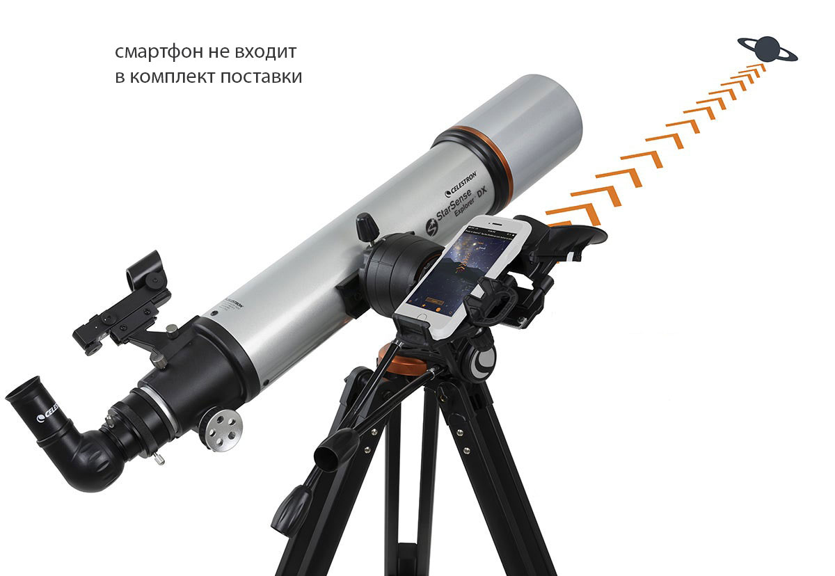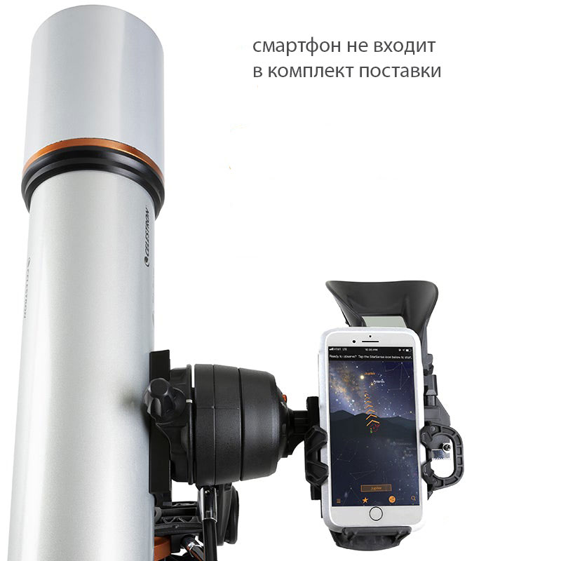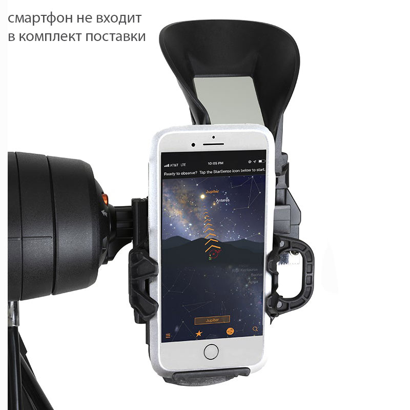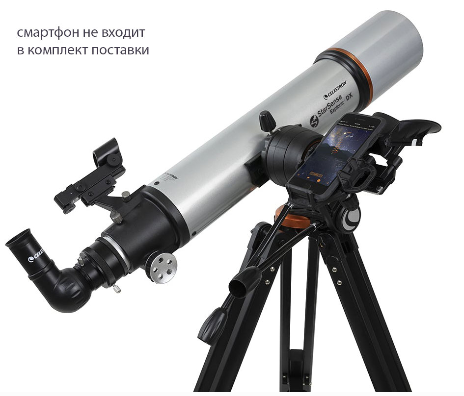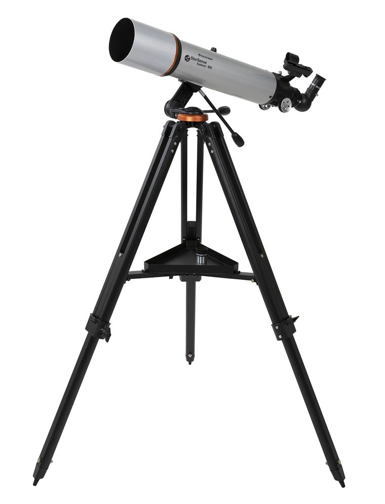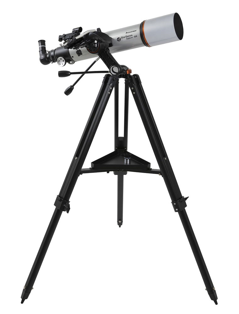 Телескоп-рефрактор с ахроматической оптикой Celestron StarSence Explorer DX 102 AZ понравится как опытным астрономам, так и тем, кто впервые использует астрономическую технику. Он позволяет изучать планеты Солнечной системы, спутник Земли и яркие объекты глубокого космоса. Апертура модели составляет 102 мм, есть оборачивающая призма для наземных наблюдений. Прибор обеспечивает передачу качественной картинки как на природе, так и в условиях городской засветки. Вместе с ним поставляется док-станция StarSense Explorer для смартфона, которая позволяет управлять телескопом через мобильное приложение. В коробке вы также найдете два окуляра (25 и 10 мм), треногу из алюминия и простую в обращении азимутальную монтировку с механизмом тонких движений по вертикальной оси.