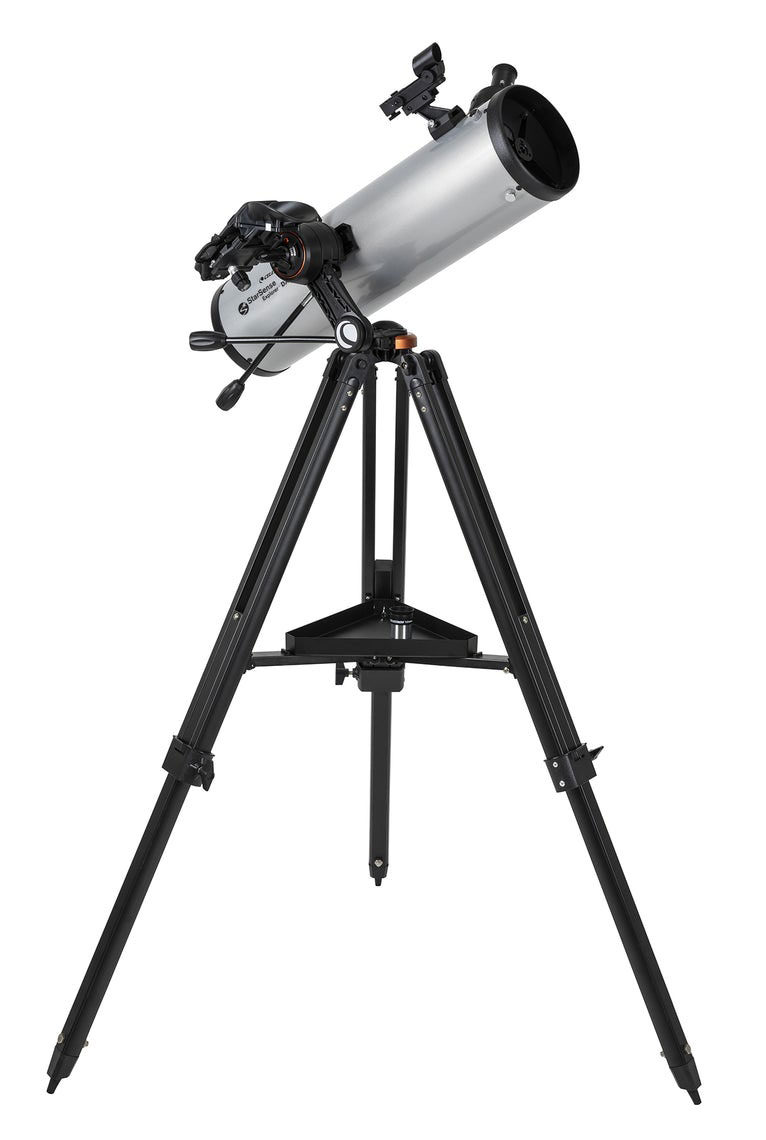 Телескоп-рефлектор Celestron StarSence Explorer DX 130 AZ с апертурой 130 мм и просветленной оптикой формирует качественное изображение небесных тел. Небольшой вес и простая конструкция делают его идеальным вариантом для тех, кто часто выезжает за город для наблюдений. Предусмотрено ручное и полуавтоматическое управление прибором: он комплектуется док-станцией StarSense Explorer для управления через смартфон. Понадобится установить мобильное приложение, которое поможет распознать небесные тела и навестись на нужные объекты. В режиме ручного управления для наведения можно использовать комплектный искатель с красной точкой. Вместе с прибором также поставляется азимутальная монтировка с системой тонкой настройки по вертикали, окуляры 10 и 25 мм и алюминиевая тренога с отсеком для аксессуаров.