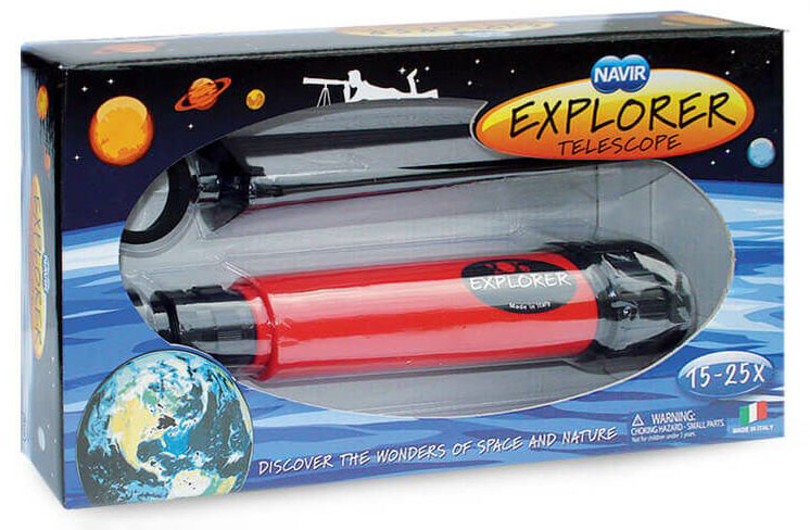 Любому любознательному ребенку непременно понравится рассматривать ночное небо через телескоп Navir. 15-кратного увеличения прибора будет достаточно, чтобы увидеть поближе яркие звезды на ночном небе, а комплектная линза с увеличением 25х позволит разглядывать поверхность Луны. Оптика телескопа состоит из 5 элементов и дает четкую и ясную картинку, которая впечатлит юного астронома. Этот оптический прибор можно держать в руках как подзорную трубу или поставить на стол, используя комплектную треногу. Телескоп изготовлен из ABS-пластика и оргстекла Plexiglas – это прочные и безопасные для детей материалы.