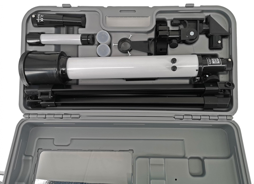 Детский телескоп EDU-TOYS 288x – это отличный вариант для подарка ребенку, увлекающемуся астрономией. С его помощью юный исследователь сможет начать изучать Луну, рассматривать созвездия и метеорные потоки. Прибор представляет собой классический рефрактор со стеклянной оптикой, установленный на азимутальную монтировку. Телескоп можно разместить на подоконнике, используя комплектную треногу из алюминия. В комплект также включена карта звездного неба, с помощью которой можно находить объекты для наблюдений.