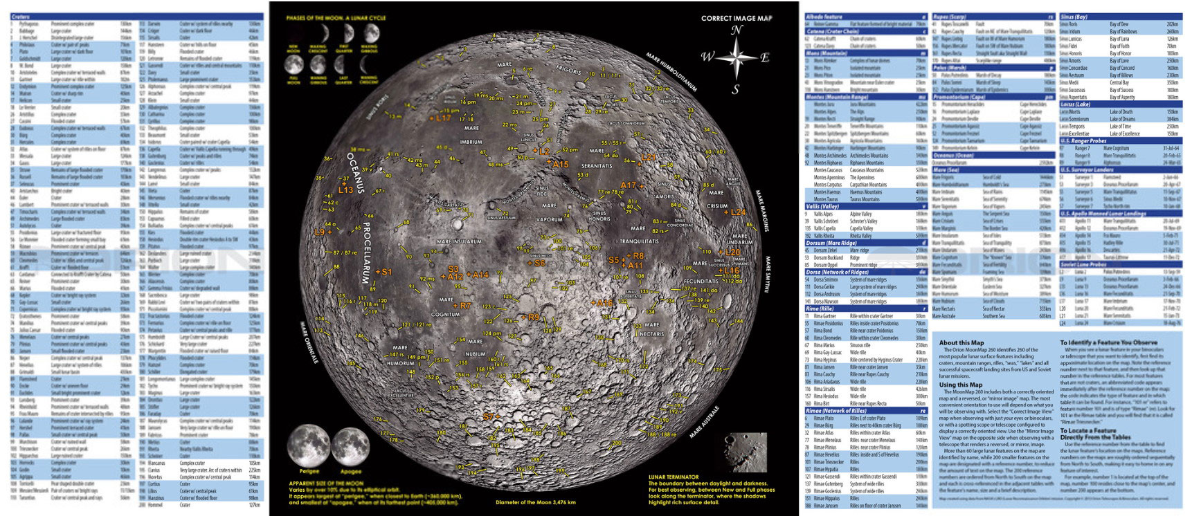 Диагональное зеркало 90°, карта лунной поверхности «MoonMap 260»