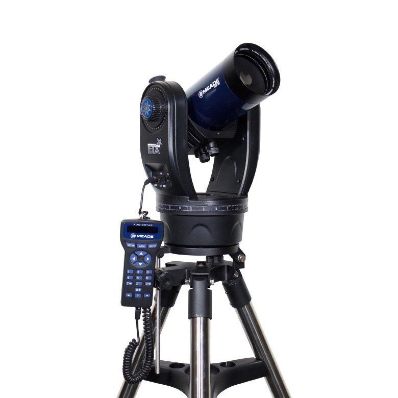 Телескоп с автонаведением Meade ETX-90 MAK – катадиоптрик с апертурой 90 миллиметров и фокусным расстоянием 1250 миллиметров. Прибор достаточно компактен, в комплекте идут сумка и кейс для хранения и транспортировки. На линзы и зеркала нанесены просветляющие покрытия. Оптическая труба установлена на азимутальную двухперьевую монтировку с системой автонаведения AudioStar (база данных: 30 000 астрономических объектов). Монтировка крепится к устойчивой стальной треноге. Телескоп отлично подойдет для визуальных наблюдений и астрофотографии.