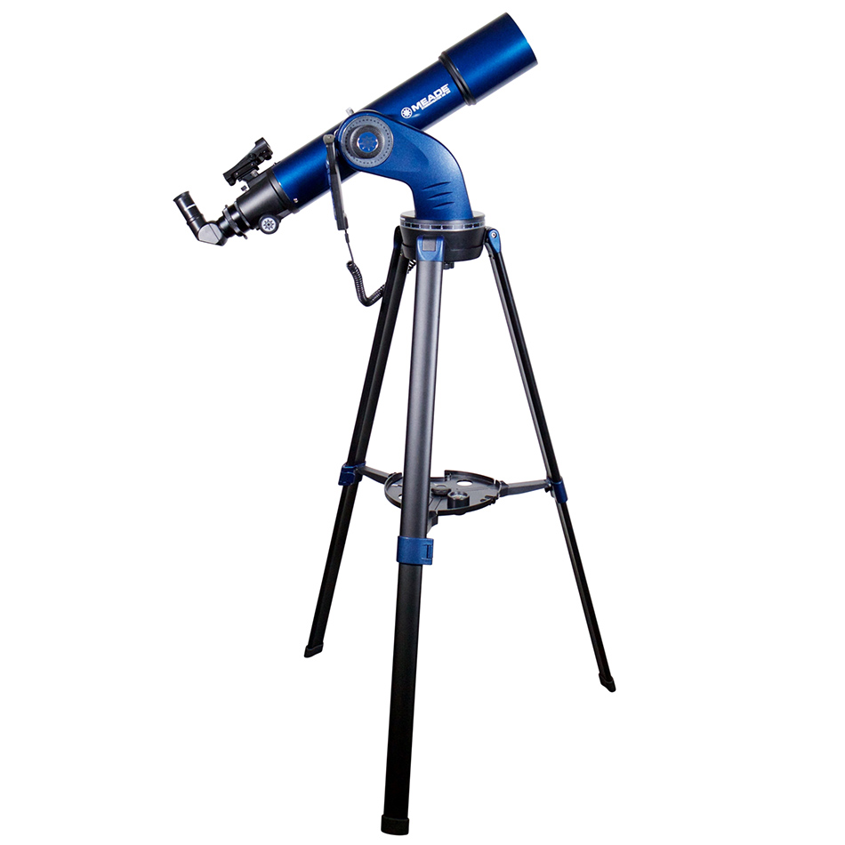 Телескоп с автонаведением Meade StarNavigator NG 102 мм – ахроматический рефрактор с системой GOTO, которая поможет быстро найти желаемый объект на звездном небе и будет сопровождать его автоматически. Эта модель довольно компакта и универсальна, в нее можно наблюдать объекты Солнечной системы и дальнего космоса, а также использовать для астрофотографии. Апертура: 102 мм, фокусное расстояние: 660 мм. В комплекте: два окуляра, искатель с красной точкой, тренога с полочкой для аксессуаров, пульт управления. Встроенная база данные содержит координаты 30 000 астрономических тел.