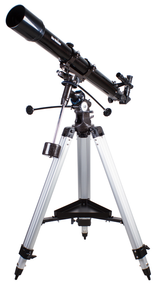 Телескоп Sky-Watcher BK 709EQ2 представляет собой 70-миллиметровый ахроматический рефрактор с просветленной оптикой. Эта модель отличается прочной конструкцией и надежной сборкой. Оптическая труба устанавливается на экваториальную монтировку EQ2. На оптические поверхности нанесено многослойное просветляющее покрытие. Телескоп обеспечивает передачу четкого, резкого и контрастного изображения, практически свободного от хроматических аберраций. Данная модель оптимальна для изучения объектов Солнечной системы. Для настройки резкости используется реечный фокусер. Телескоп комплектуется двумя окулярами: 25 мм и 10 мм. Экваториальная монтировка EQ2 снабжена механизмами тонких движений по обеим осям. Дополнительно на ось прямого восхождения можно установить моторный привод (в комплект не входит). Алюминиевая тренога регулируется по высоте. Комплектация: