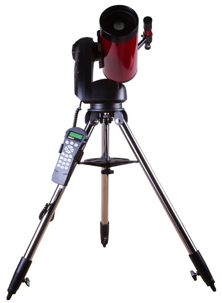 Телескоп комплектуется одноперьевой азимутальной монтировкой, системой автонаведения SynScan и стальной треногой с регулировкой высоты. В пульт управления SynScan уже загружены координаты 42 000 астрономических объектов. Они разделены по тематикам и собраны в каталоги – найти нужный не составит труда. Телескопом можно управлять и вручную. Благодаря технологии свободного наведения Freedom Find он сохраняет привязку к координатам, поэтому проводить повторное позиционирование не понадобится.