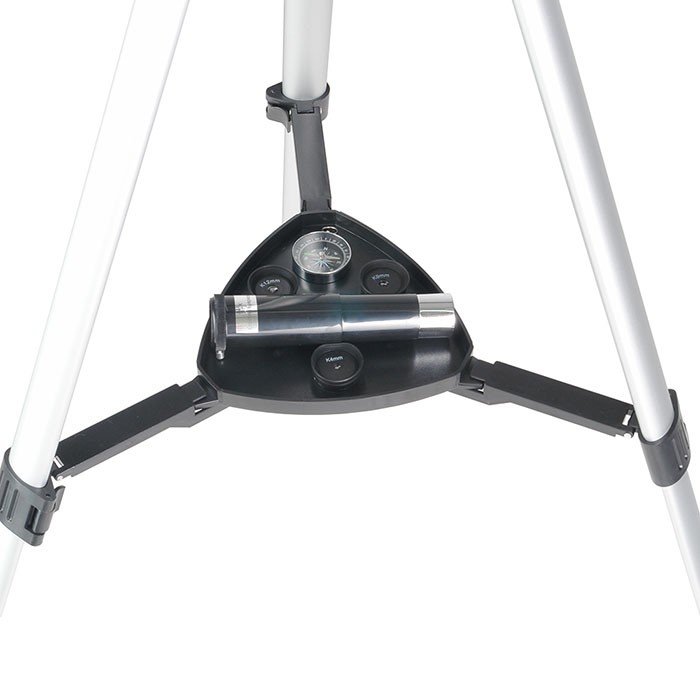 Высота штатива — 110 см, она оптимальна для наблюдений из положения стоя — ведь окуляр расположен под углом 90° к трубе. Минимальная высота штатива — 60 см — позволяет вести наблюдение из положения сидя.