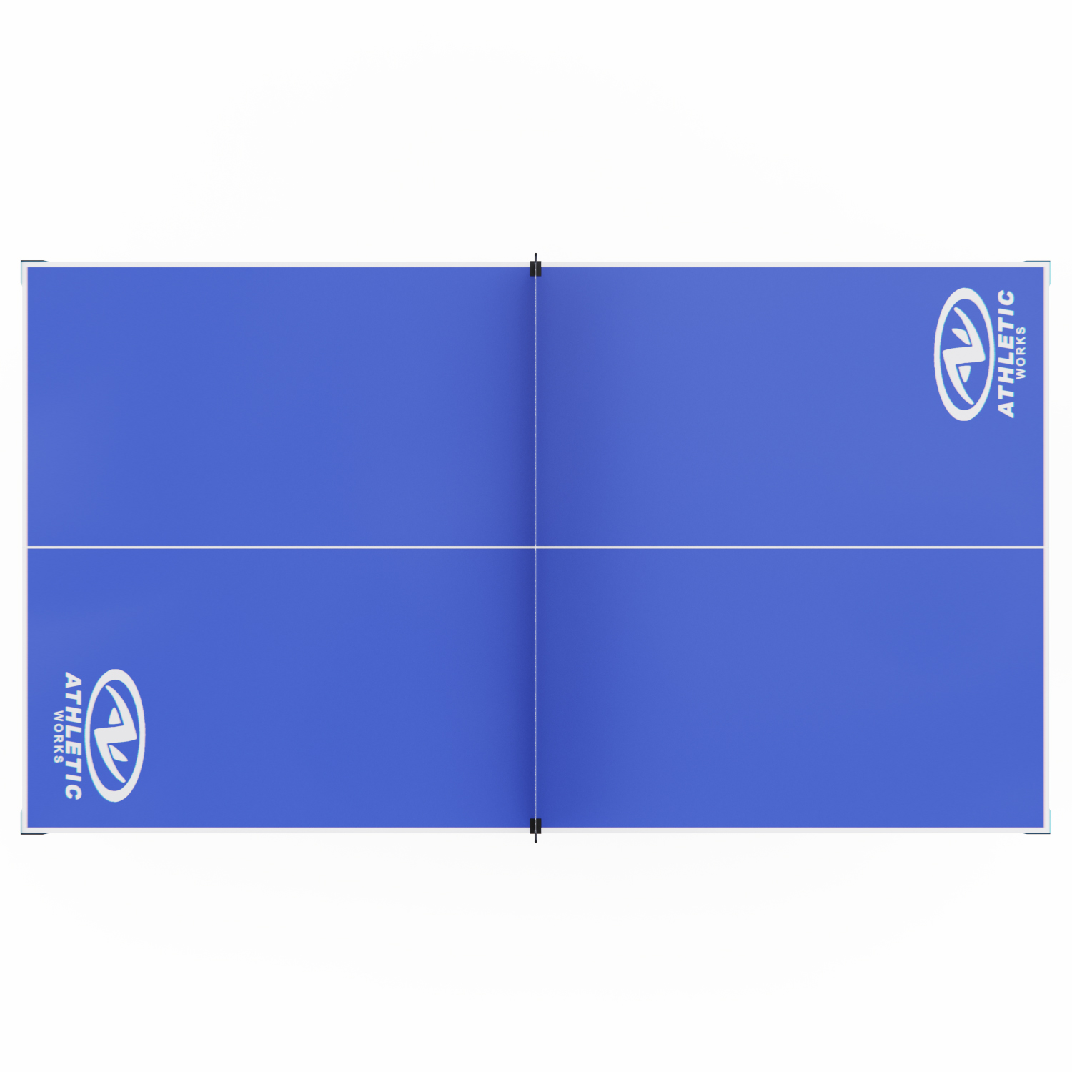 Столешница выполнена прочных металлических элементов с ножками диаметром 25 мм, что гарантирует устойчивость и безопасность в процессе игры. Такая конструкция выдерживает интенсивные нагрузки и подходит для регулярного использования. Толщина столешницы 15 мм, что обеспечивает хороший и предсказуемый отскок мяча. Синий цвет поверхности выглядит ярко и стильно, а защитный кант по периметру предохраняет края столешницы от повреждений и продлевает срок службы.