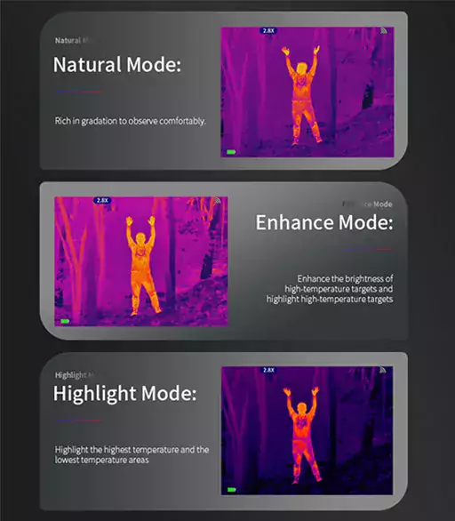 - Монокуляр имеет контрастный и морозостойкий OLED дисплей с разрешением 640х400. Инновационная матрица VOx с разрешением 384х288 пикселей и высокой чувствительностью NETD до 40mK предоставляет детализированную идентификацию цели на всех рабочих дистанциях. Возможна тонкая настройка ключевых параметров: цветопередачи (5 монохромных и псевдоцветных схем), насыщенности (3 сюжетных режима), контраста и яркости (по 5 уровней). Присутствует режим PiP (картинка в картинке), с изменяемым положением «окна» и функция обнаружения самых «горячих» объектов среди тех, что попали в поле зрения.