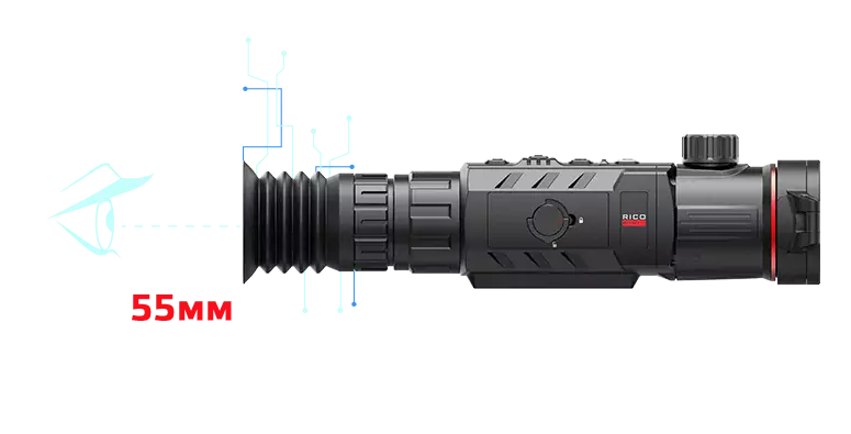 Безопасное использование на оружие с динамичной отдачей – удаление выходного зрачка 55 миллиметров.