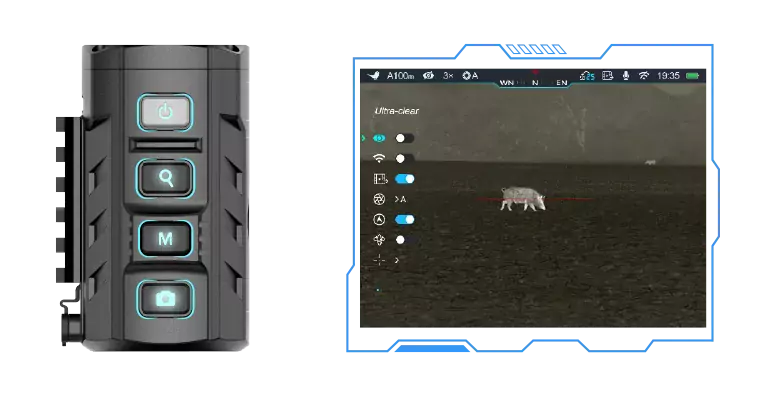 4 клавиши для управления огромным и эффективным функционалом устройства. Множество функций и возможность персональных настроек для обеспечения полноценного использования устройства в различных условиях охоты и наблюдения.