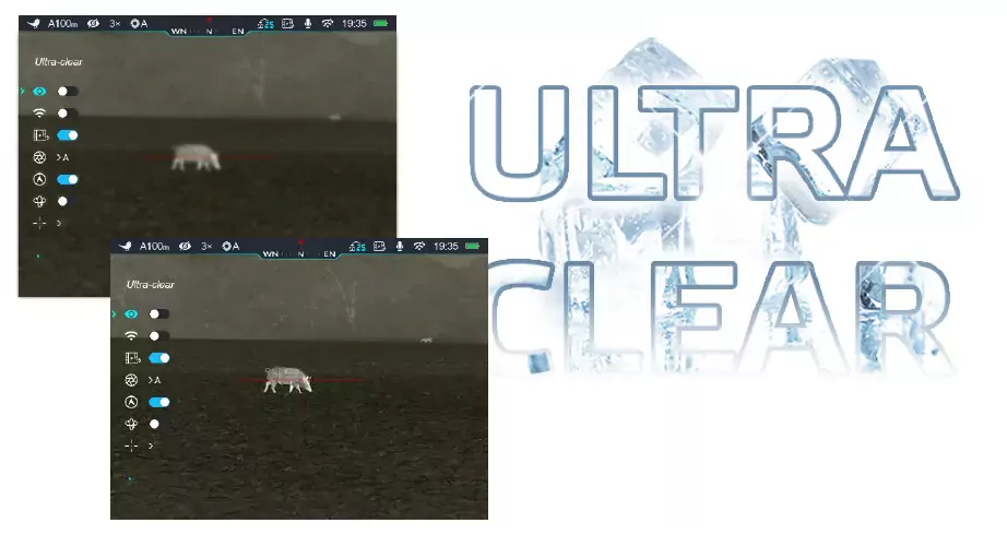 Высокочувствительный сенсор (<40mK) обеспечивает невероятно четкое изображение, на всех рабочих дистанциях тепловизионного прицела, с передачей всей информации до мельчайших деталей.