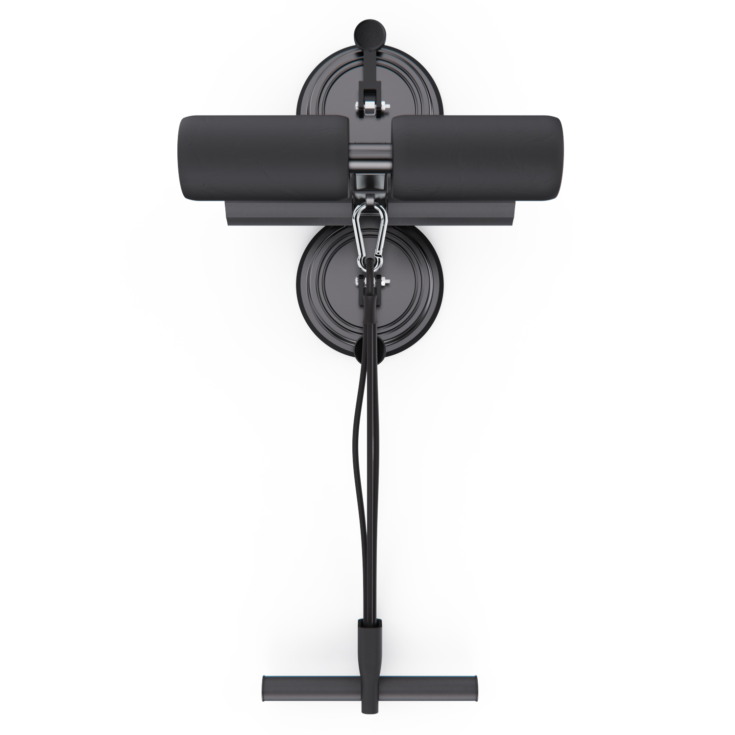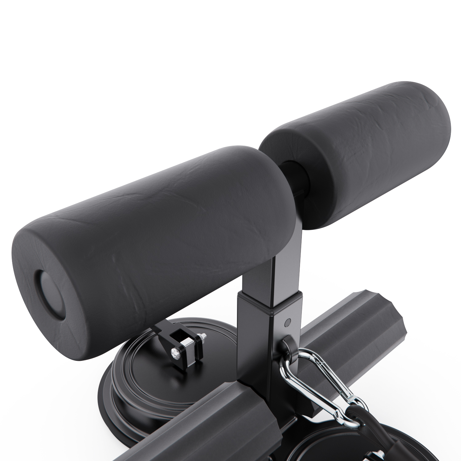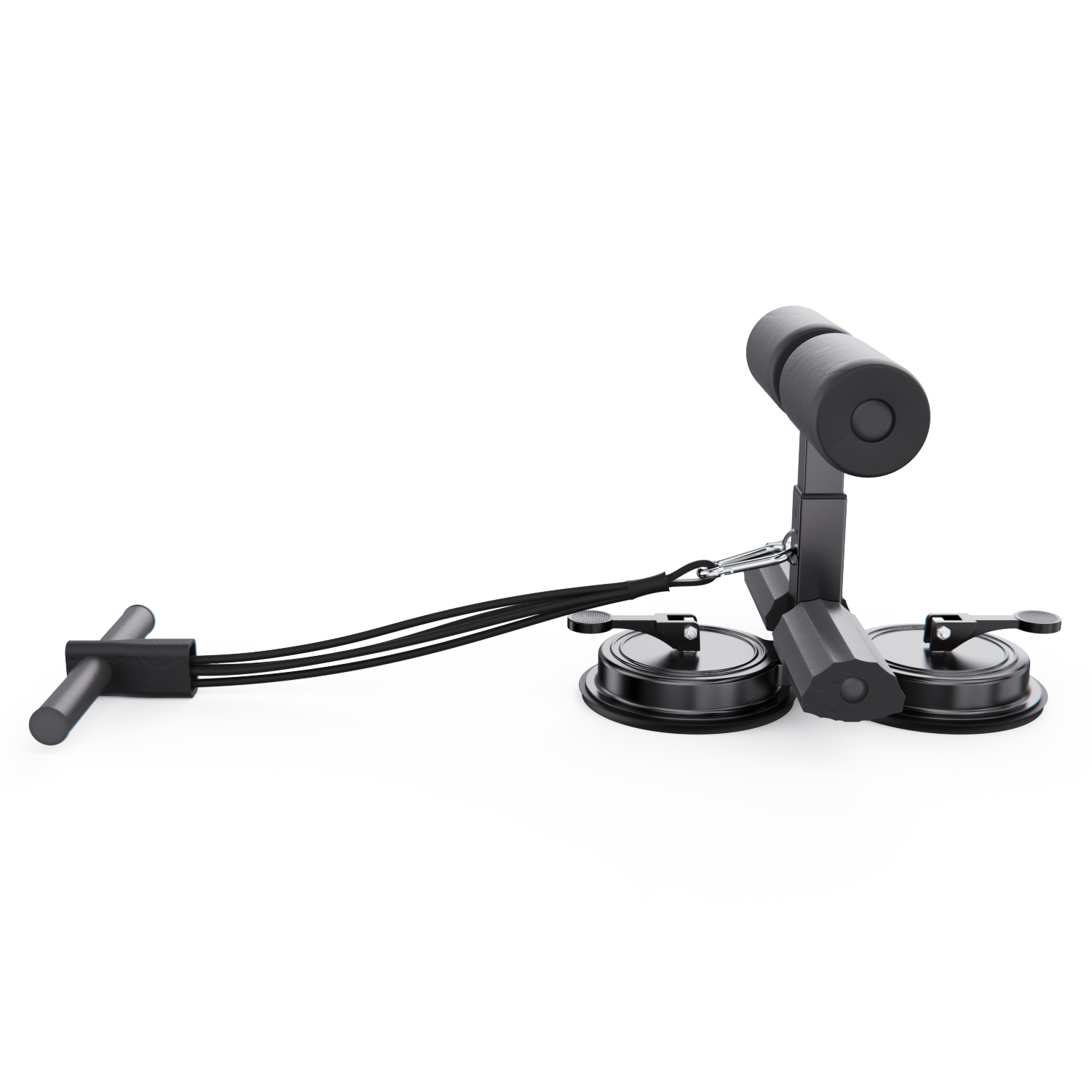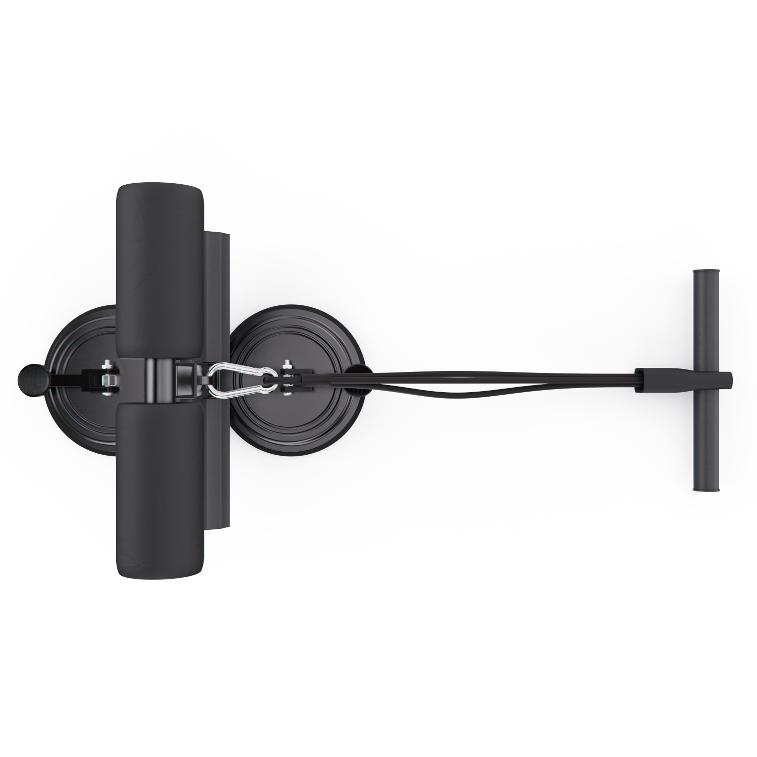 Тренажёр оснащён двумя мощными присосками диаметром 108 мм, которые обеспечивают прочное сцепление с полом и исключают скольжение во время упражнений. Длина рукоятки — 23 х 3 см, а мягкие валики диаметром 10,5 х 5 см плотно фиксируют стопы, делая тренировки безопасными и комфортными.