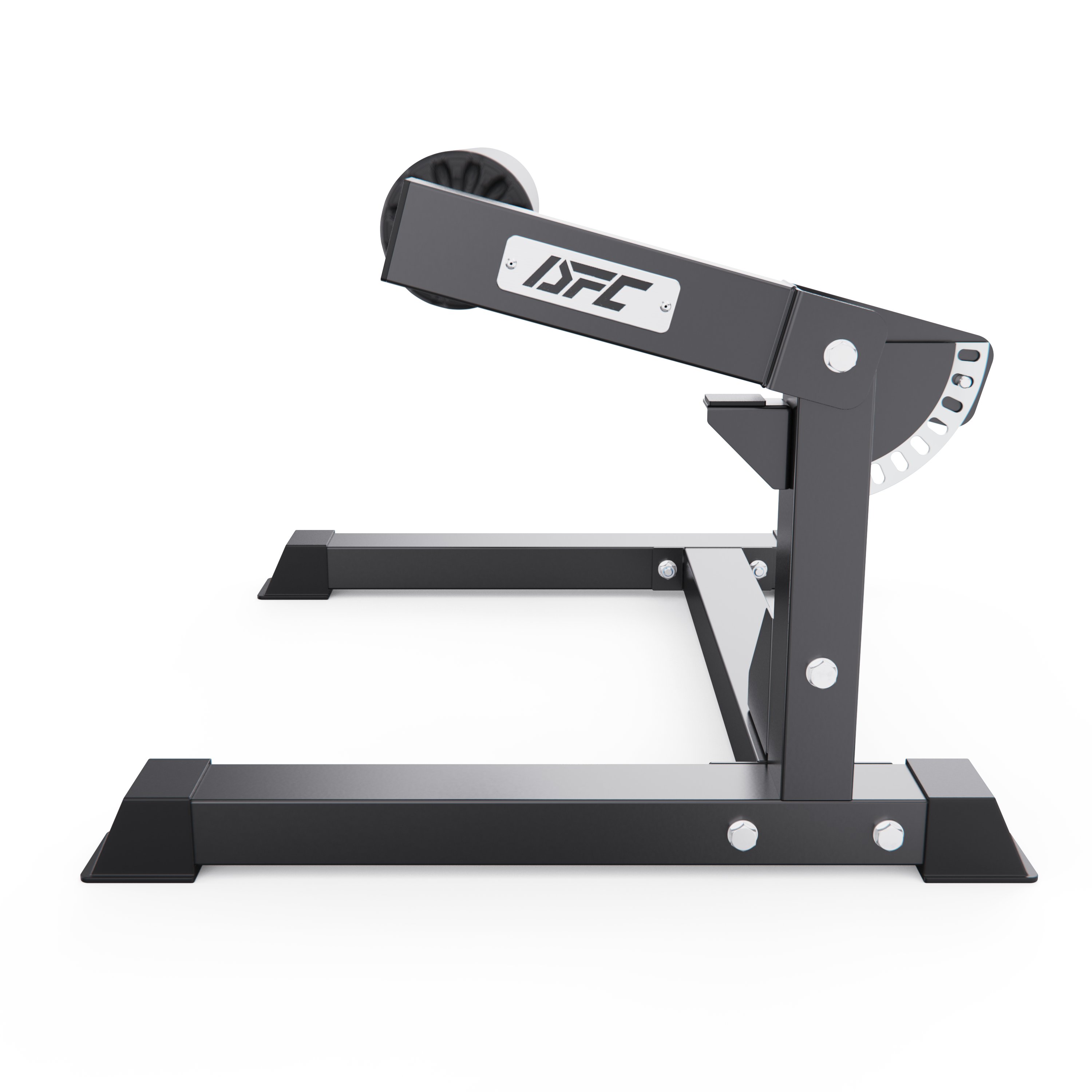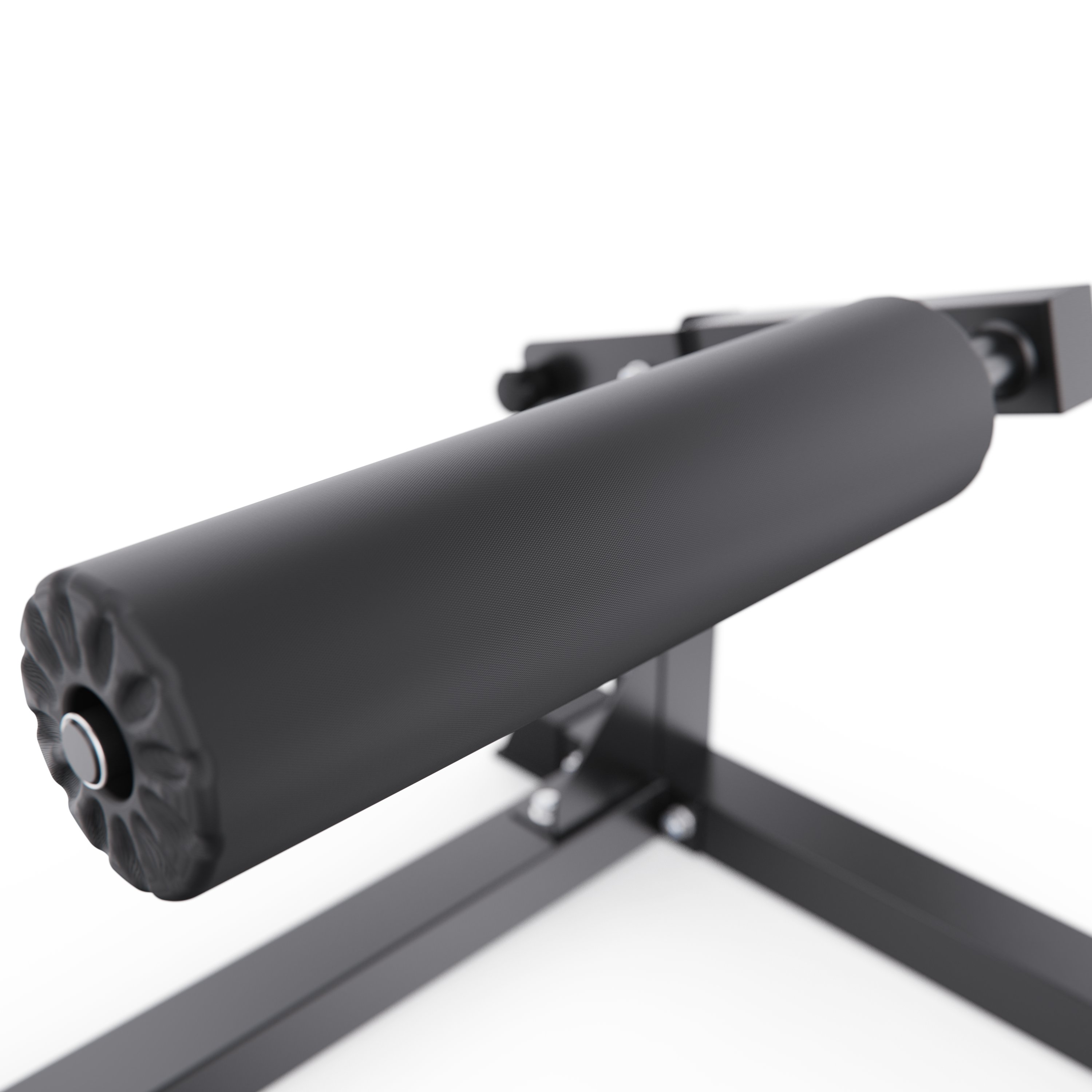 Размер тренажера в собранном виде составляет 75 х 66 х 40–69 см, а вес конструкции – 16 кг. Каркас выполнен из стали с профилем 70 х 50 мм и толщиной стенки 1,5–3 мм, что обеспечивает надежность и устойчивость конструкции при эксплуатации. Валики изготовлены из плотной пены с полиуретановым покрытием, благодаря чему они сохраняют форму и обеспечивают комфортное положение ног во время упражнений. Размер валиков – 45 х 10 см.