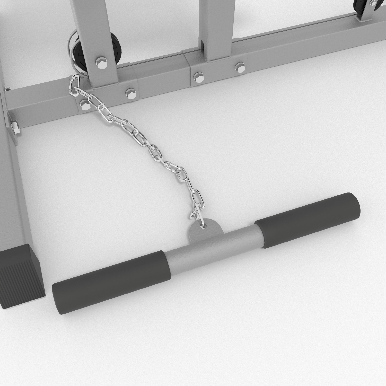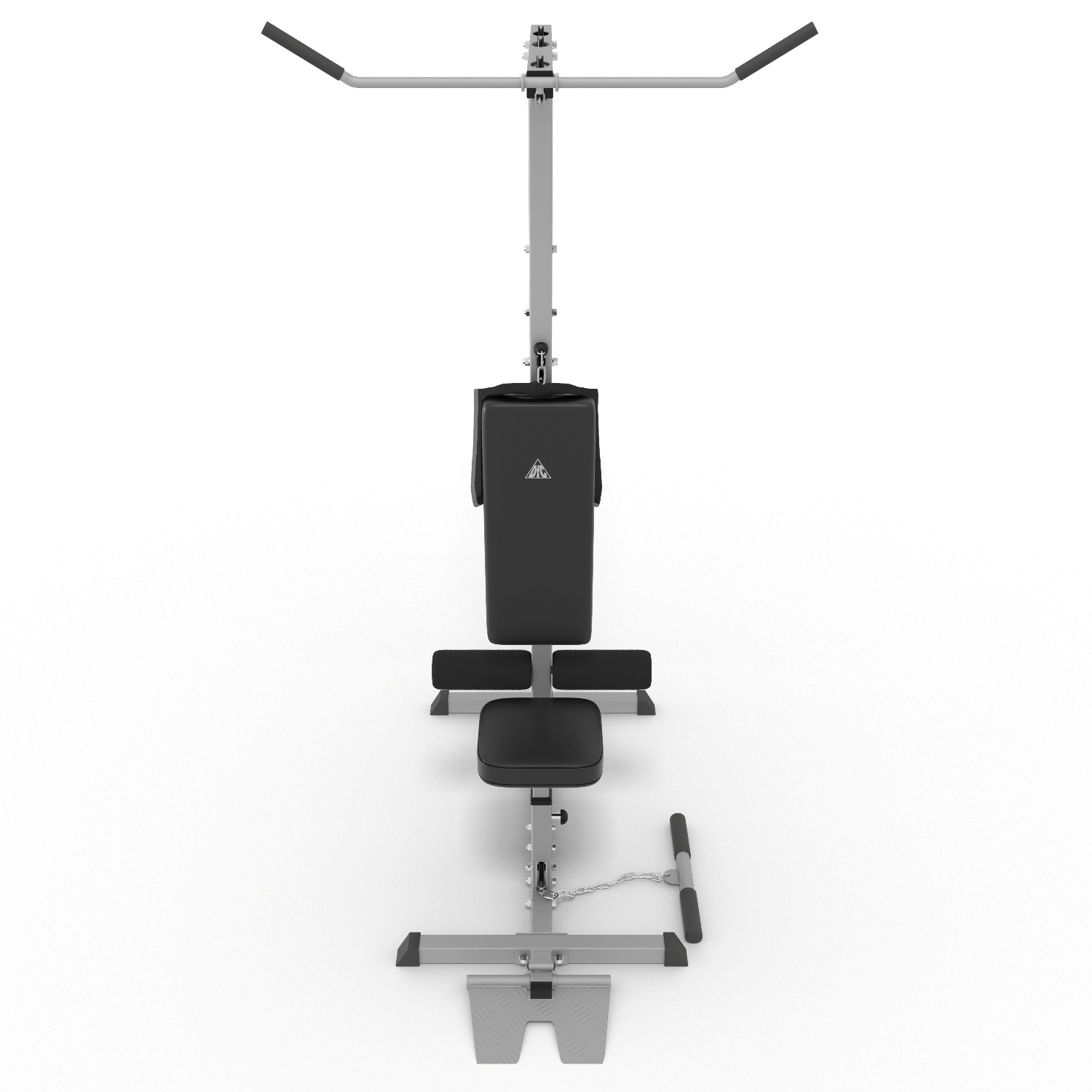 Тренажер на свободных весах (Lat Mashine) для проработки мышц спины и плечевого пояса. Объединяет верхнюю и горизонатльную тяги. Сиденье тренажера и валики для ног имеет регулировку по высоте, позволяют подобрать удобную посадкуи надежно фиксируют тело атлета во время занятий. Рама тренажера изготовлена из прочного стального профиля, размером 50х50 и толщиной 1,5 мм. В качестве нагрузки используются диски (веса) с посадочным диаметром 26 мм, общим весом до 100 кг. Диски (веса) в комплект не входят (опция, приобретаются отдельно).
