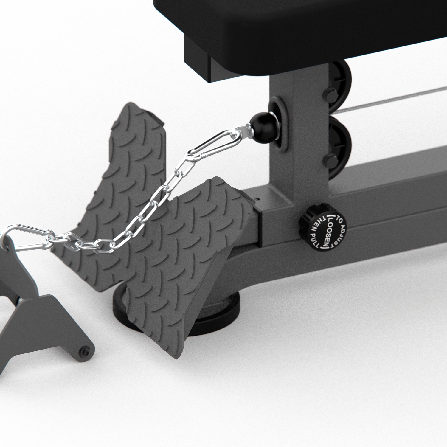 Упор для ног с валиками регулируется по высоте на 7 уровней. Рифлёная платформа регулируется по длине на 6 уровней. Помимо широкого спектра регулировок, оба снаряда, поставляющихся в комплекте, съёмные. Все эти свойства помогут подстроить DS15 под нужды и габариты любого пользователя.