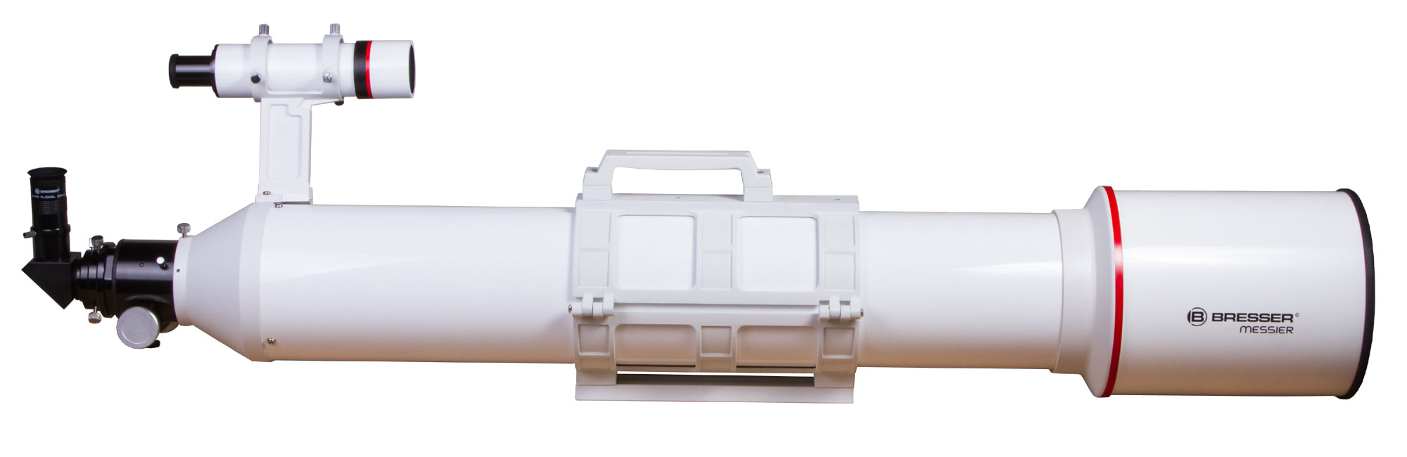 Оптическая труба снабжена креплением «ласточкин хвост». Благодаря стальным направляющим оно более надежно, чем классические варианты этого крепления. Фокусер позволяет устанавливать оптические аксессуары с посадочным диаметром 1,25" и 2" – при помощи комплектных адаптеров. Есть и T2-резьба, необходимая для фиксирования цифровой фотокамеры (Т2-кольцо приобретается отдельно). Крепежные кольца снабжены удобной ручкой для переноски трубы и резьбовым креплением 1/4".