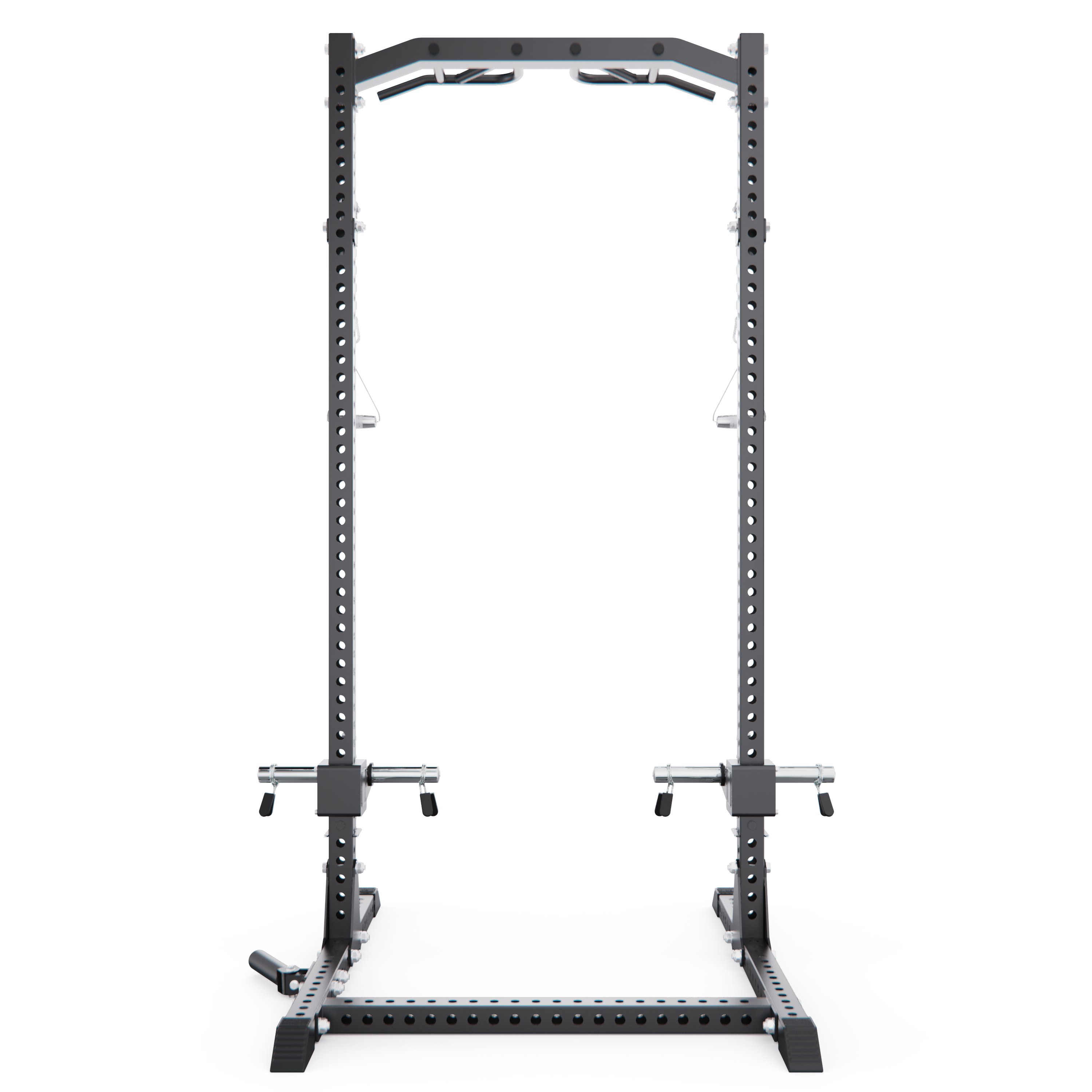 Встроенный кроссовер расширяет функциональность тренажера и позволяет прорабатывать все основные группы мышц. Кроме того, с одной стороны рамы предусмотрено специальное отверстие для установки грифа, которое позволяет использовать раму как Лэндмайн, выполняя жим и другие упражнения с естественной амплитудой движения.