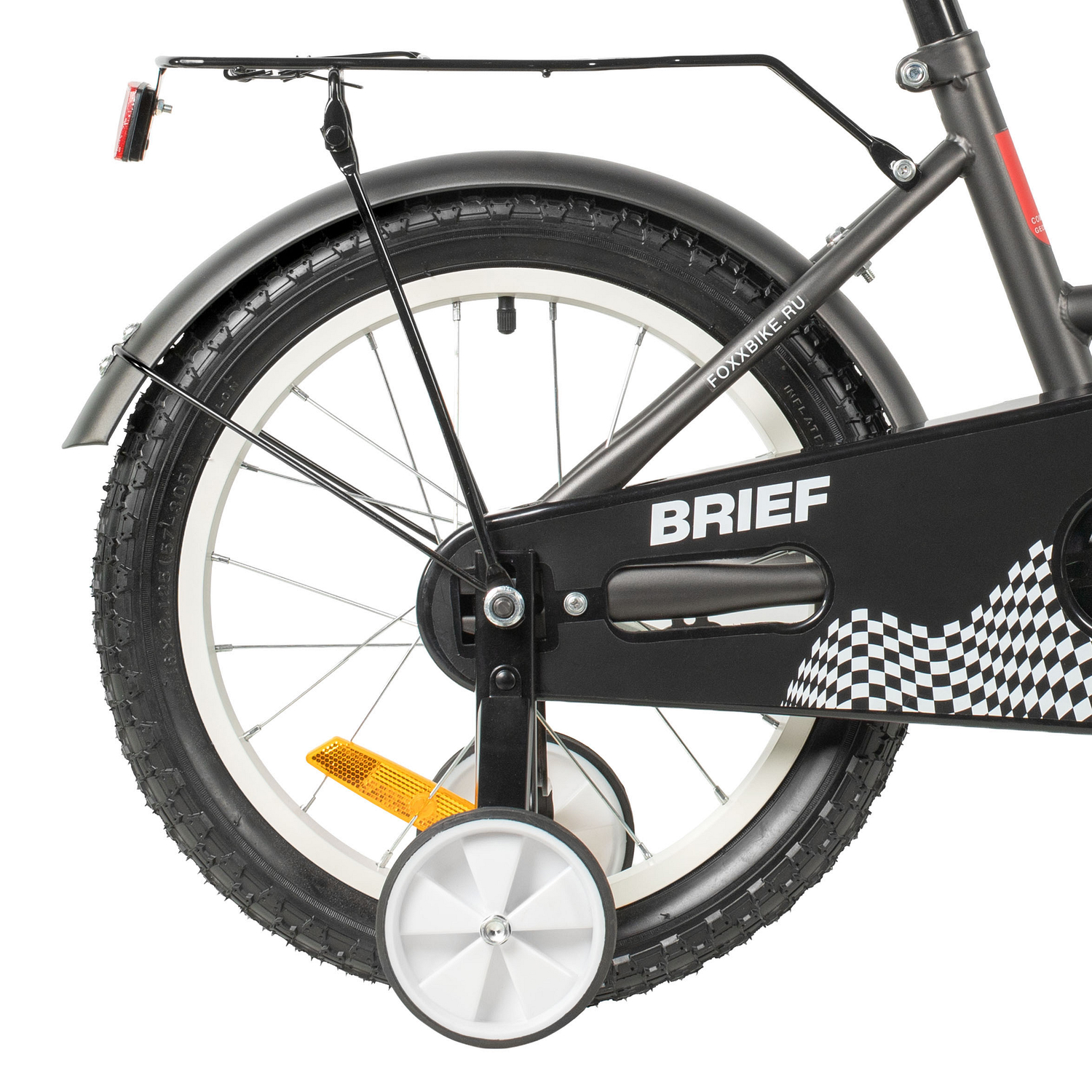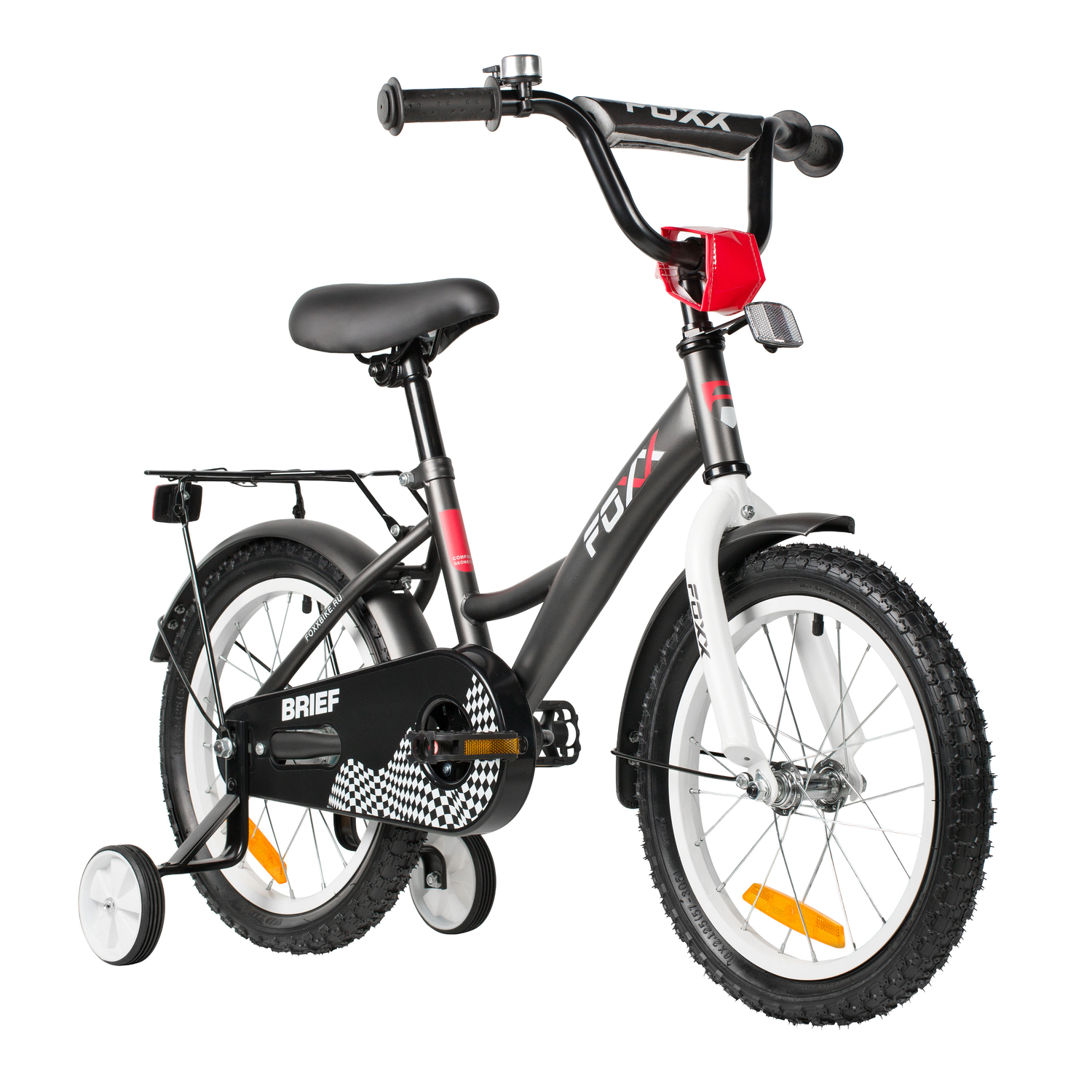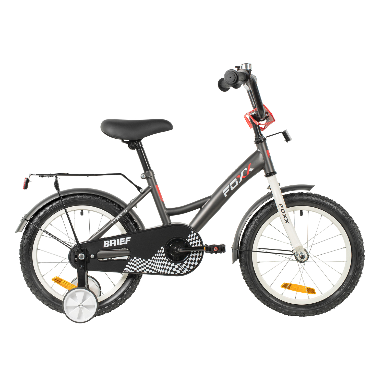 Велосипед FOXX 14" BRIEF тёмно-серый, сталь, тормоз нож, крылья, багажник. полная защ.цепи