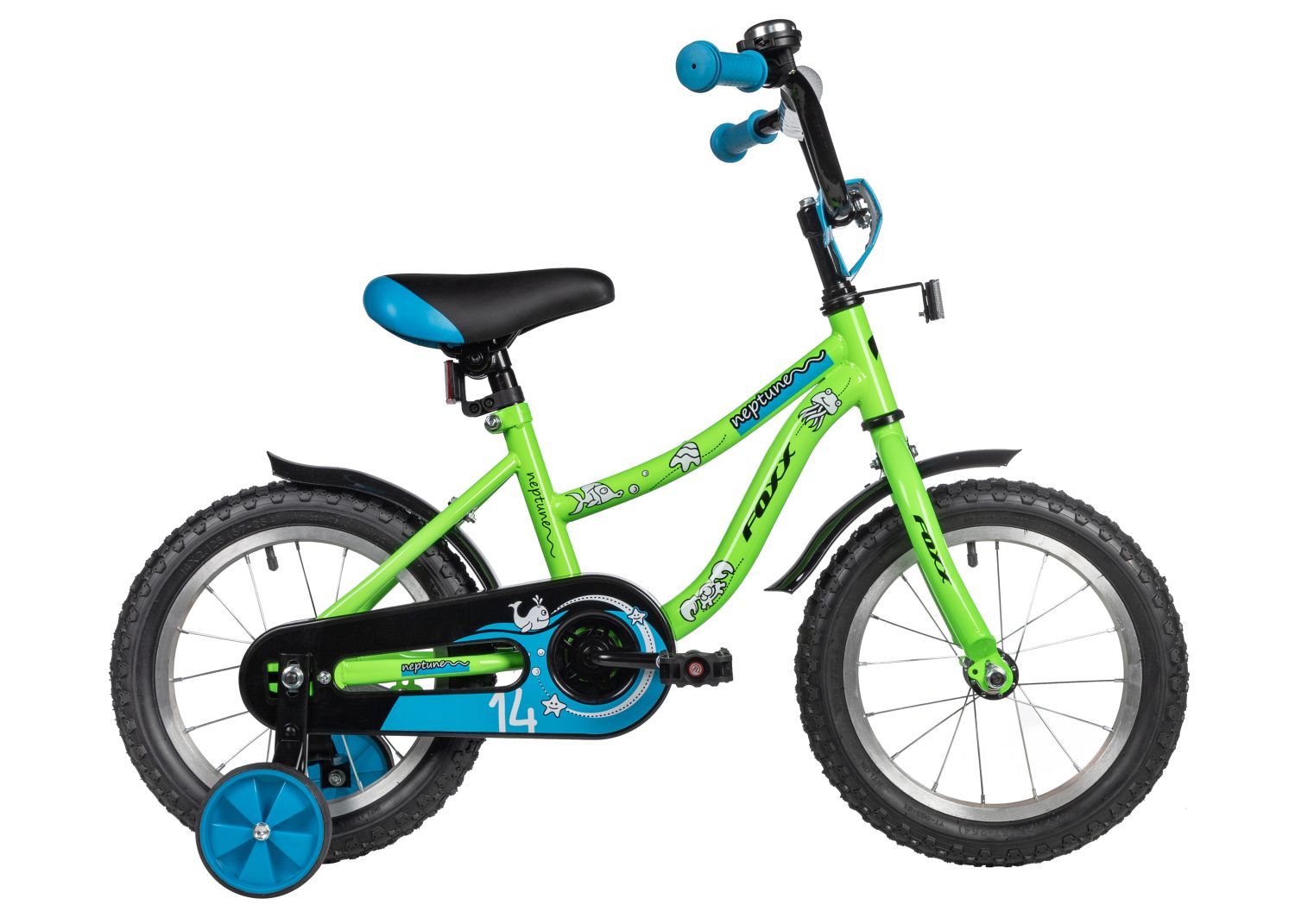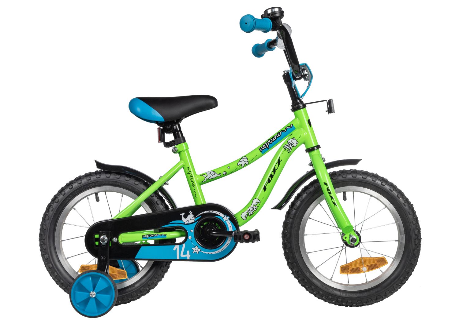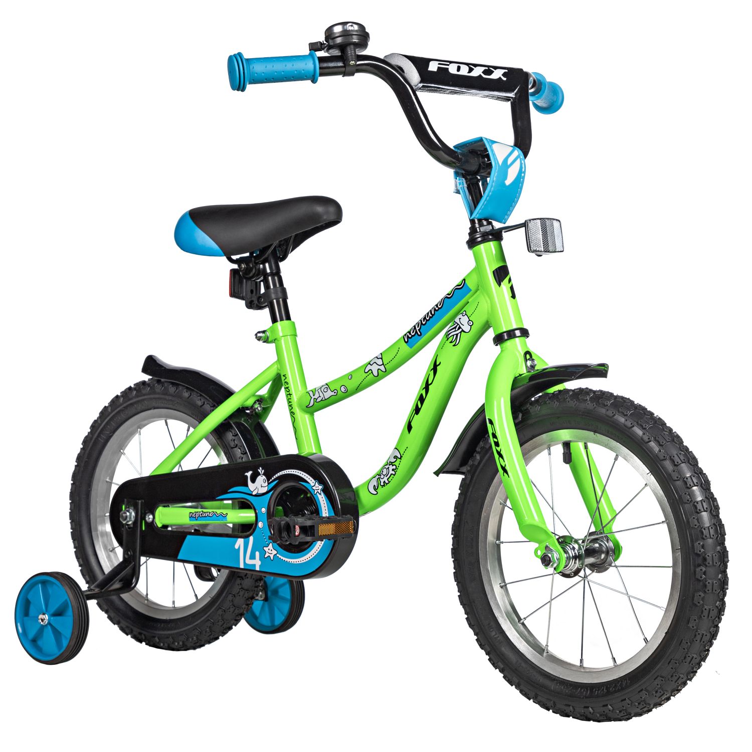 Велосипед FOXX 14", NEPTUNE салатовый, полная защита цепи, короткие крылья, нет багажника