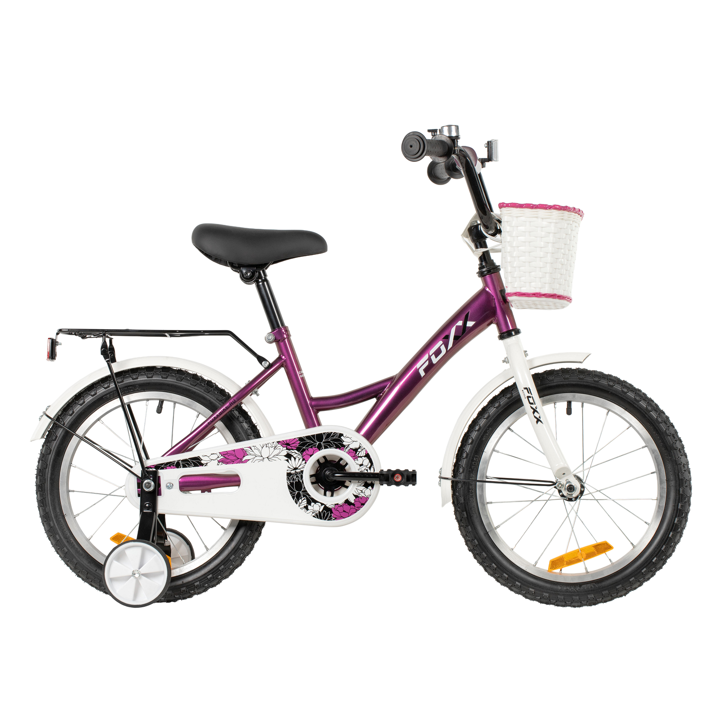 Велосипед FOXX 16" BRIEF фиолетовый, сталь, тормоз нож, крылья, багажник, передняя корзина