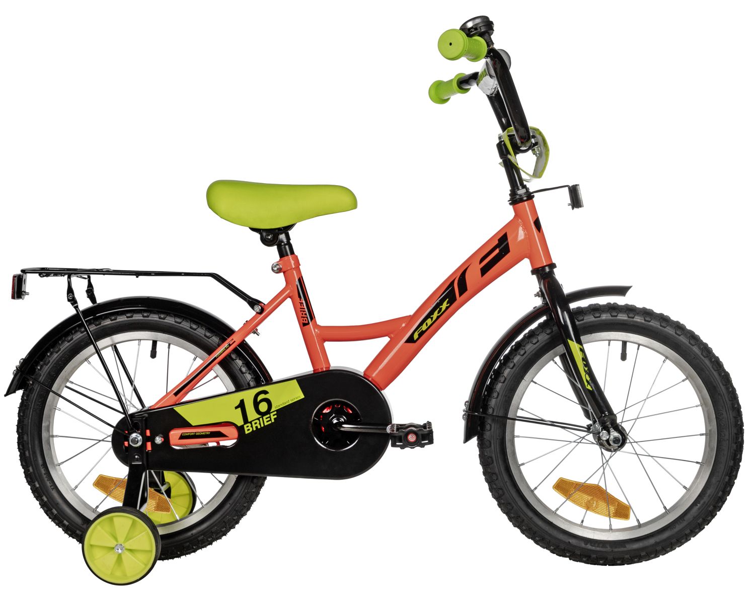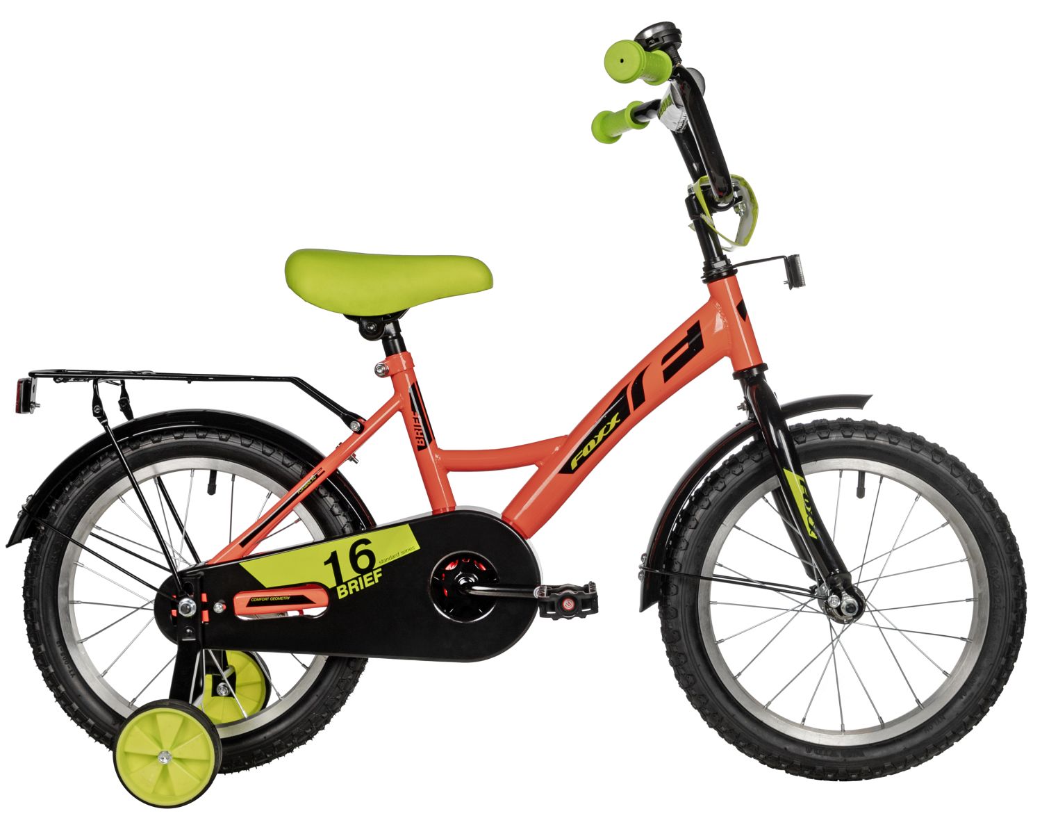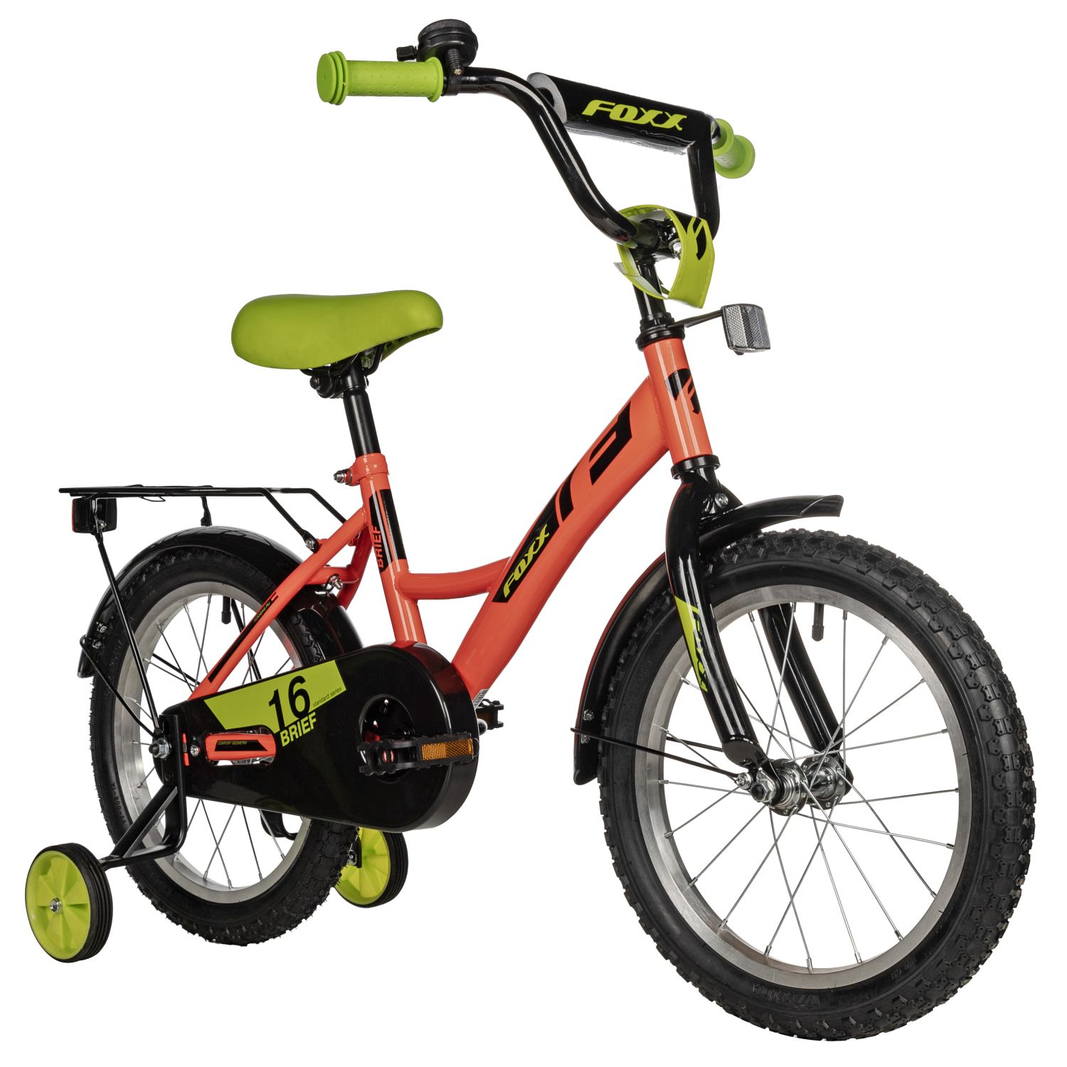 Велосипед FOXX 16" BRIEF красный, сталь, тормоз нож, крылья, багажник.