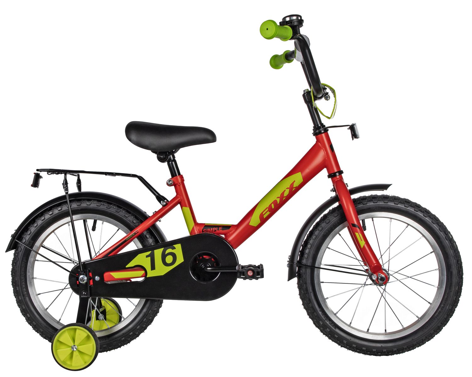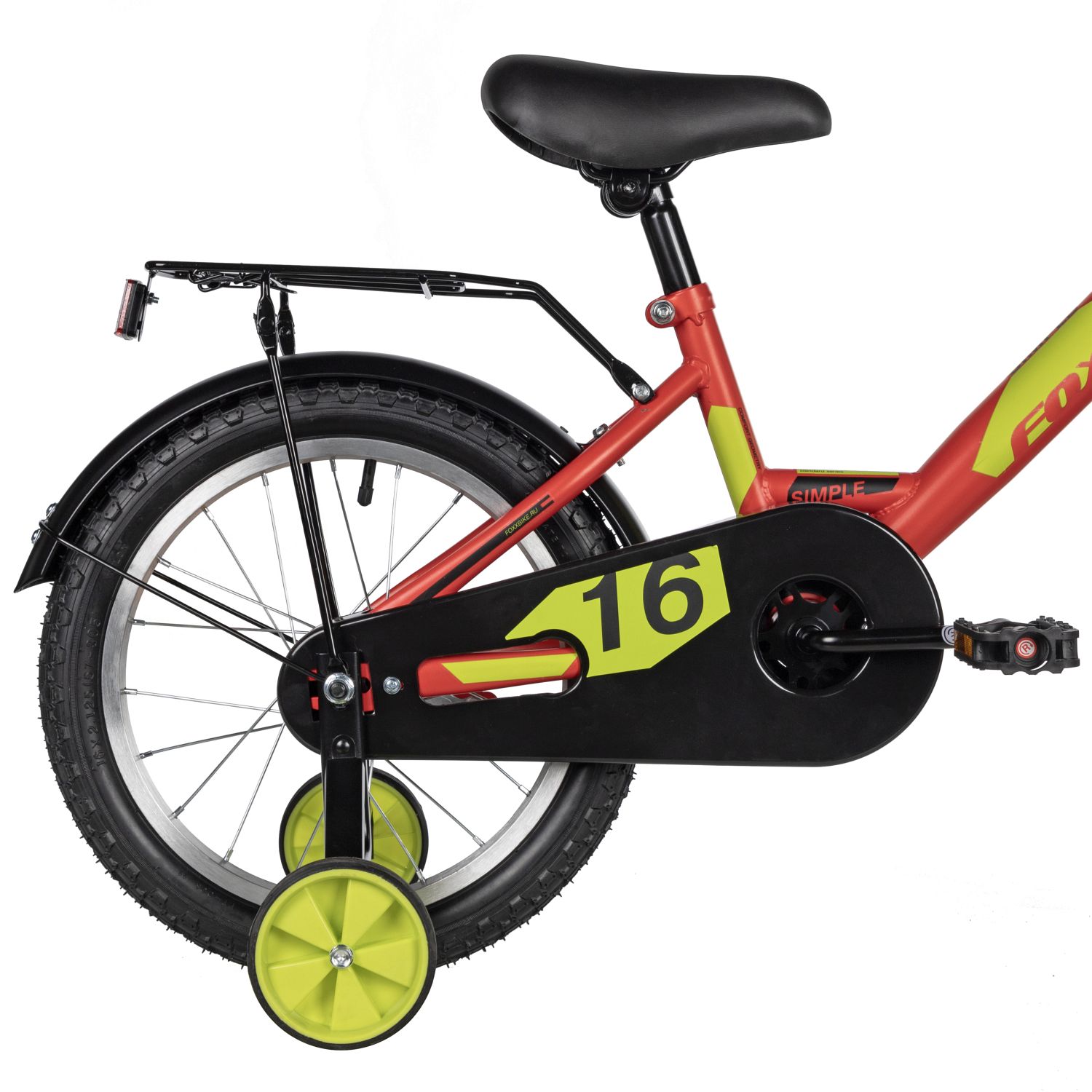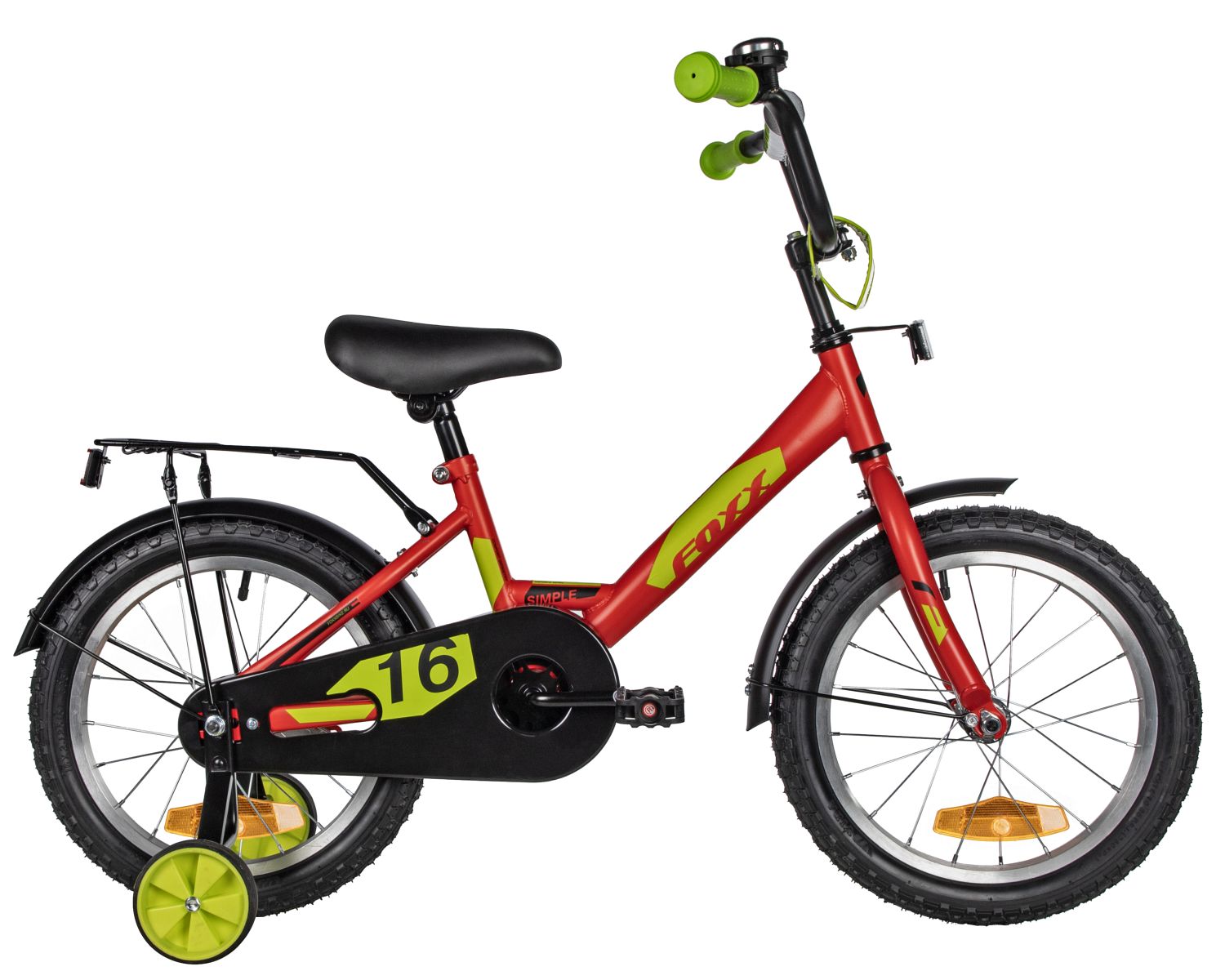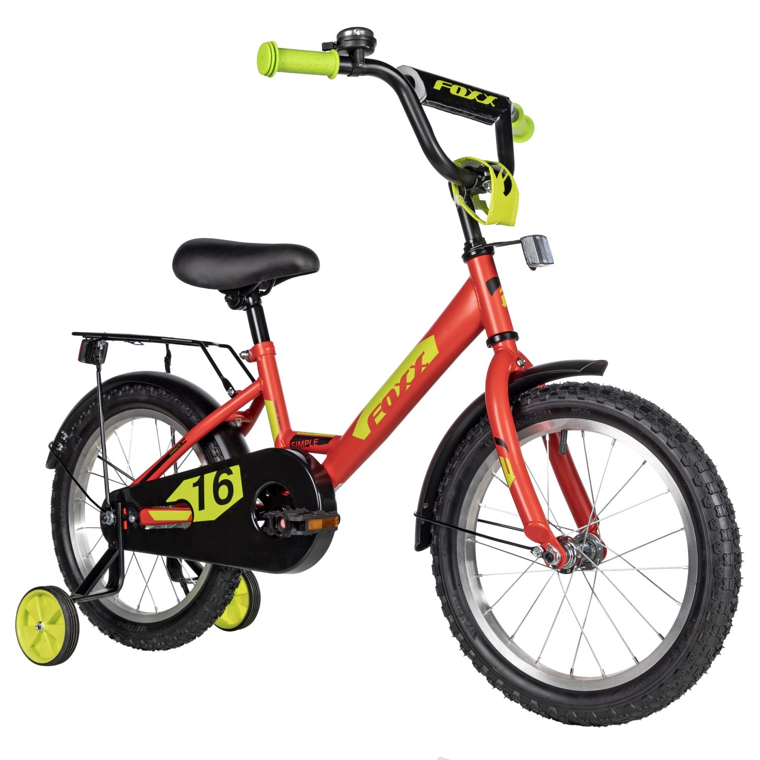 Велосипед FOXX 16" SIMPLE красный, сталь, тормоз нож, крылья, багажник, полная защ.цепи
