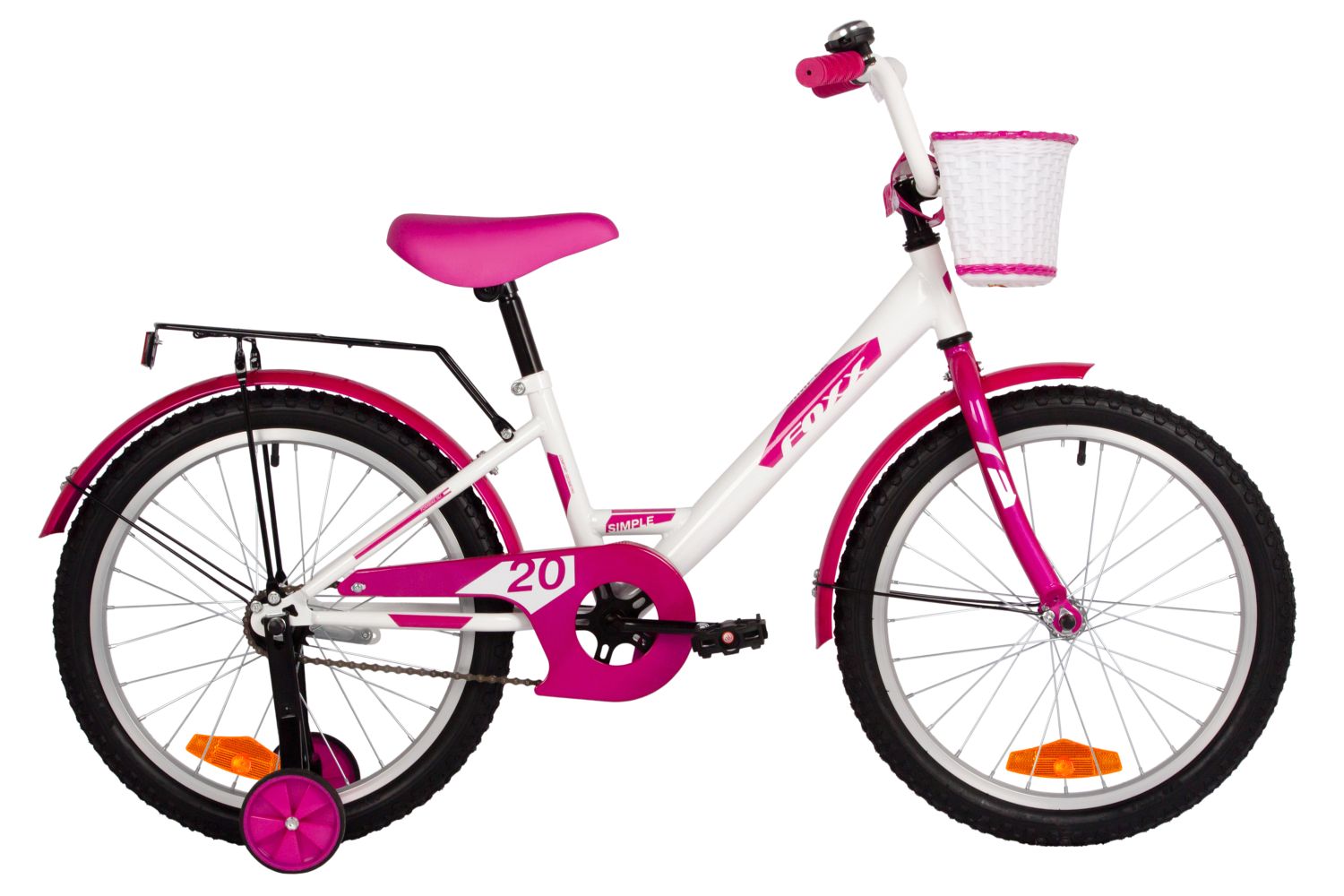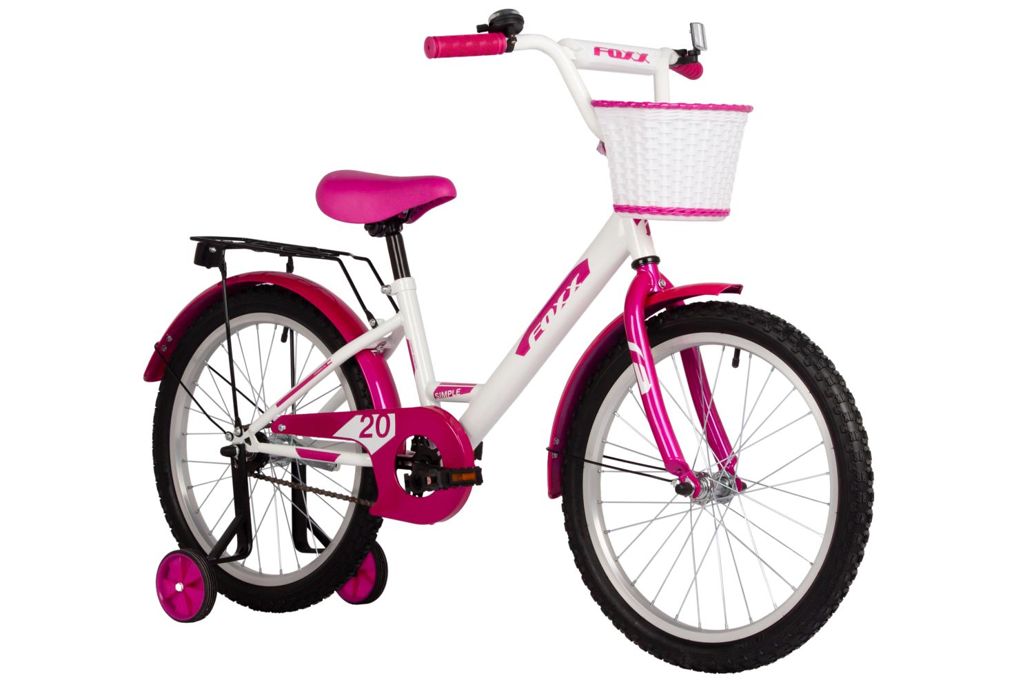 Велосипед FOXX 20" SIMPLE белый, сталь, тормоз нож, крылья, багажник, полная защ.цепиб передняя корзина