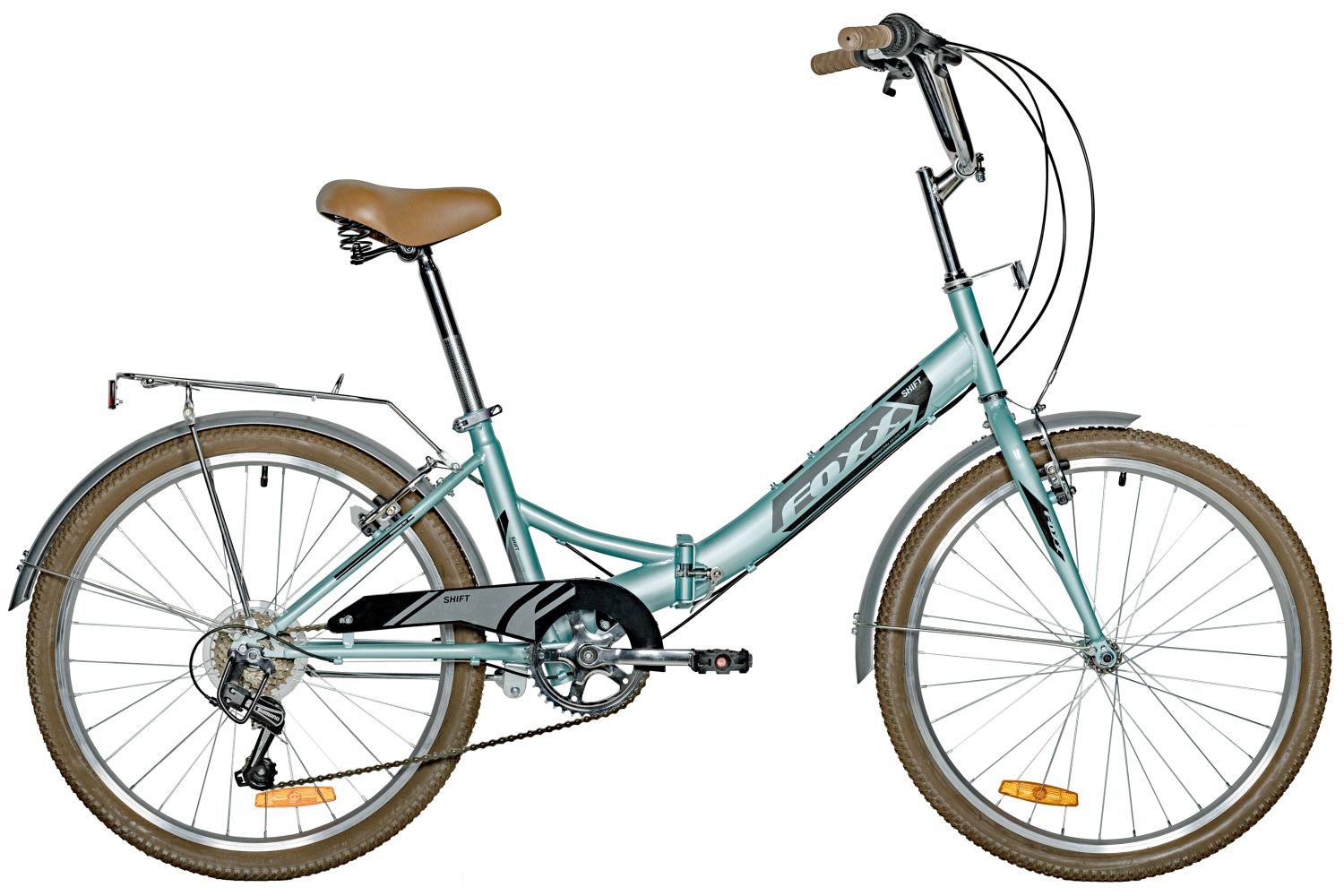 Велосипед FOXX 24" складной, SHIFT, зелёный, 6-скор, Shimano RS35/TY21, двойной обод, багажник