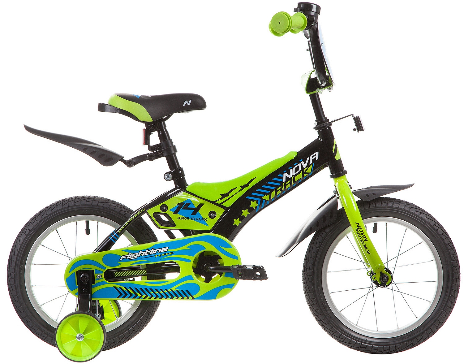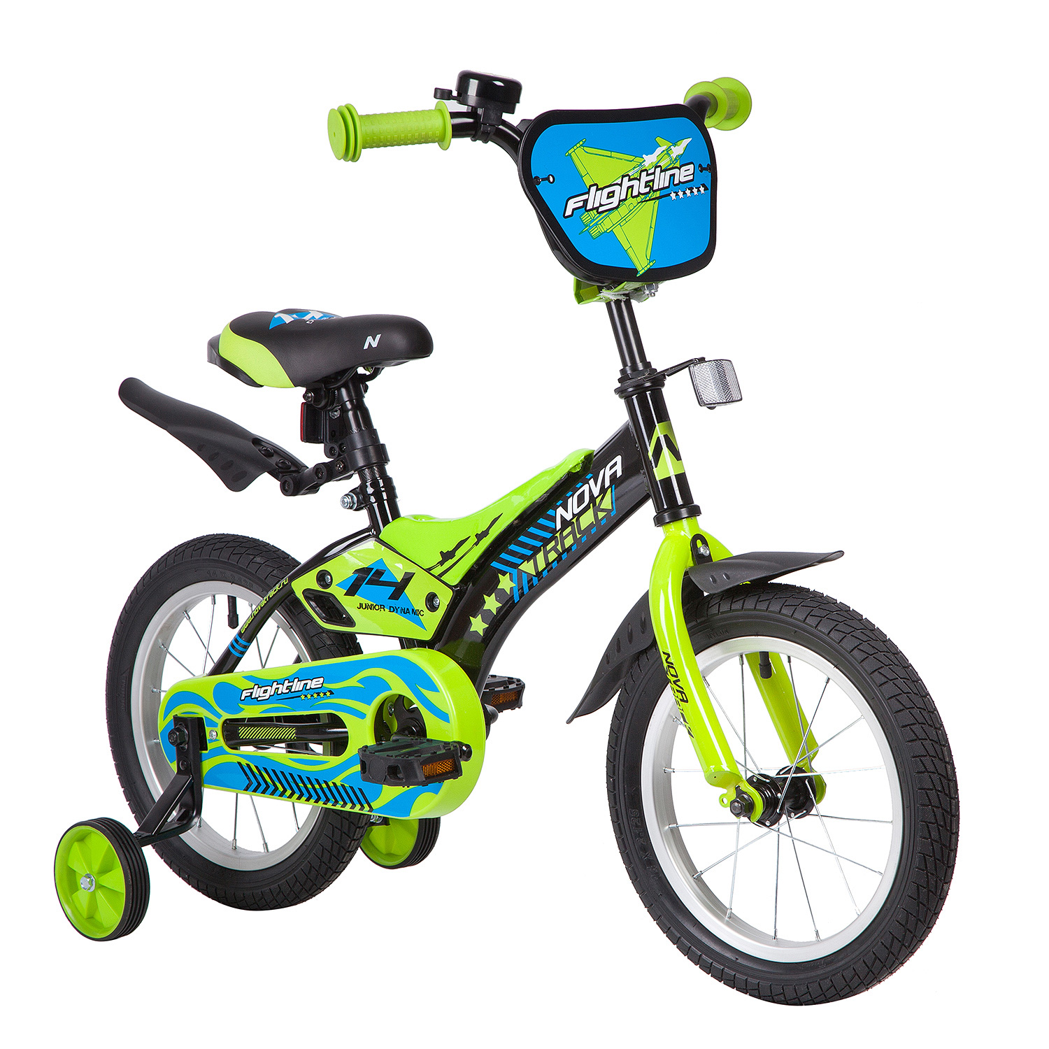 Велосипед NOVATRACK 14" FLIGHTLINE, чёрный, пластиковые короткие крылья
