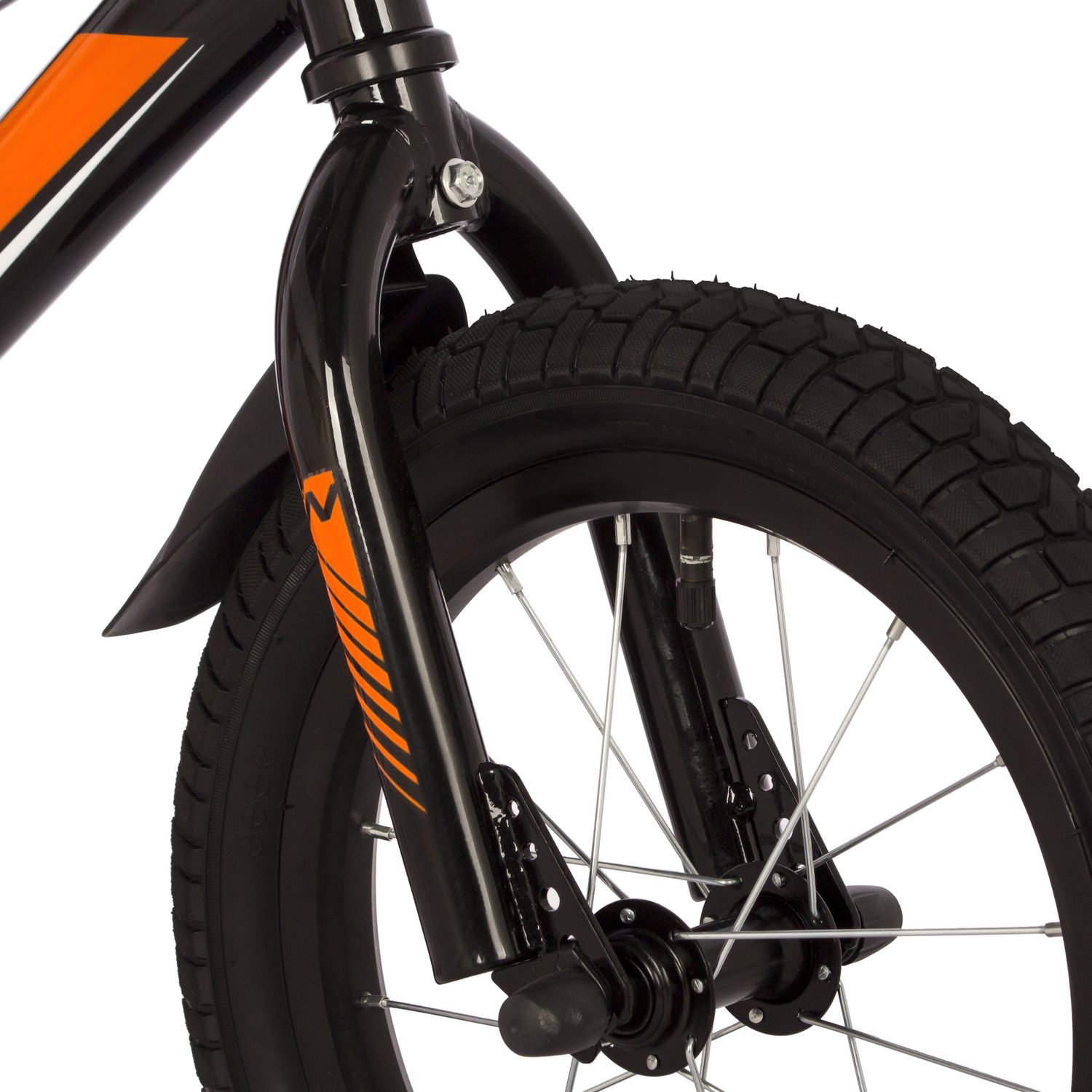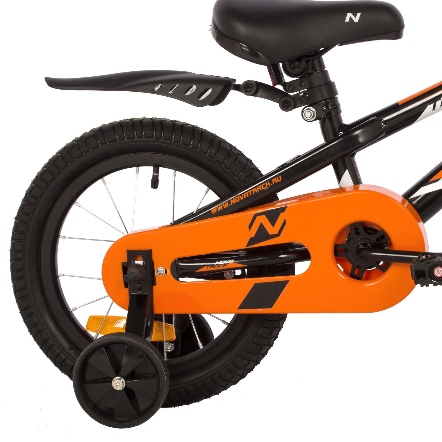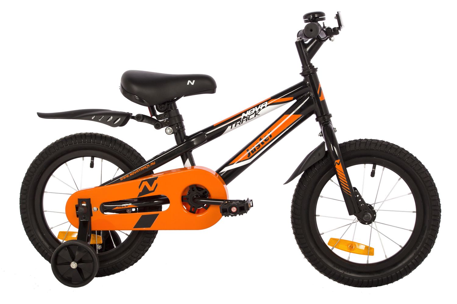 Велосипед NOVATRACK 14", JUSTER, чёрный, тормоз ножной, полная защита цепи, чёрные крылья