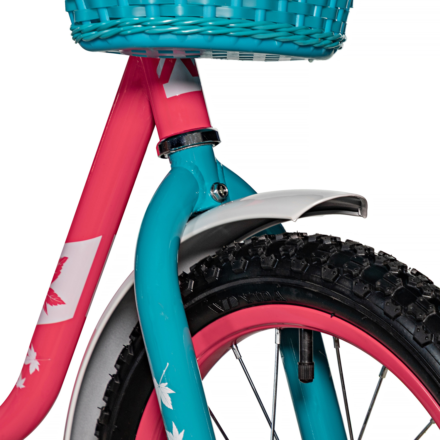 Велосипед NOVATRACK 14" MAPLE, неон розовый, полная защита цепи, тормоз нож.,крылья, багажник, передняя корзина