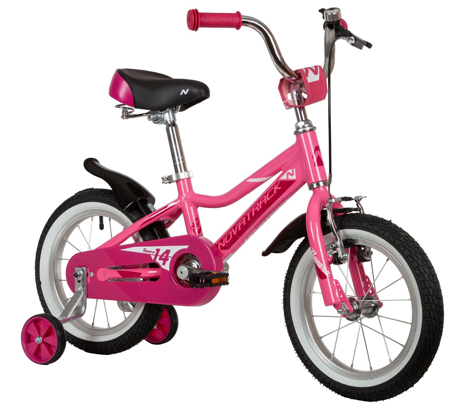 Велосипед NOVATRACK 14" NOVARA алюм., розовый, пер.руч., зад.нож. тормоз, короткие крылья, полная защ.цепи