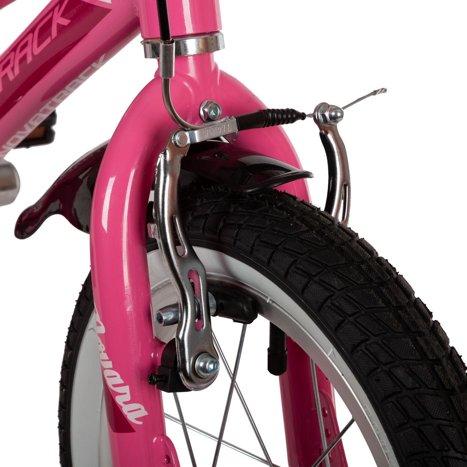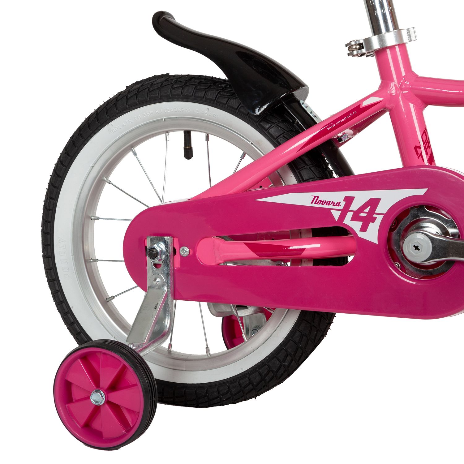 Велосипед NOVATRACK 14" NOVARA алюм., розовый, пер.руч., зад.нож. тормоз, короткие крылья, полная за