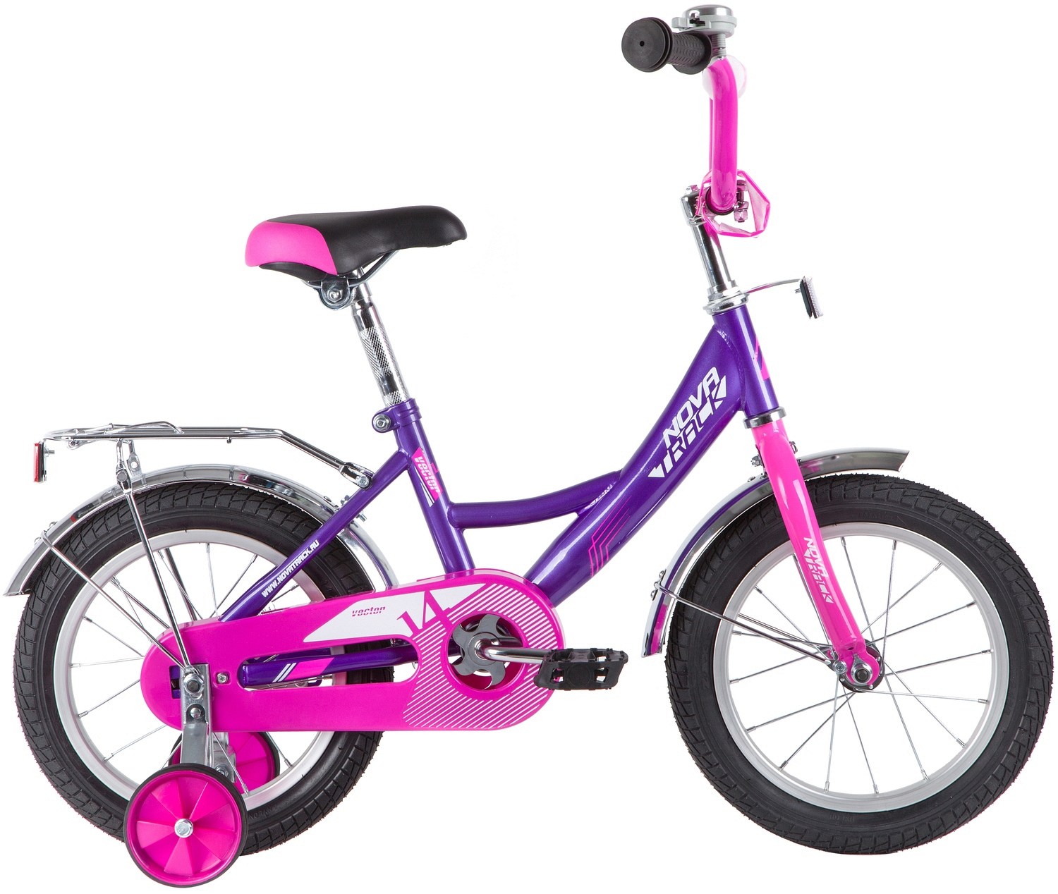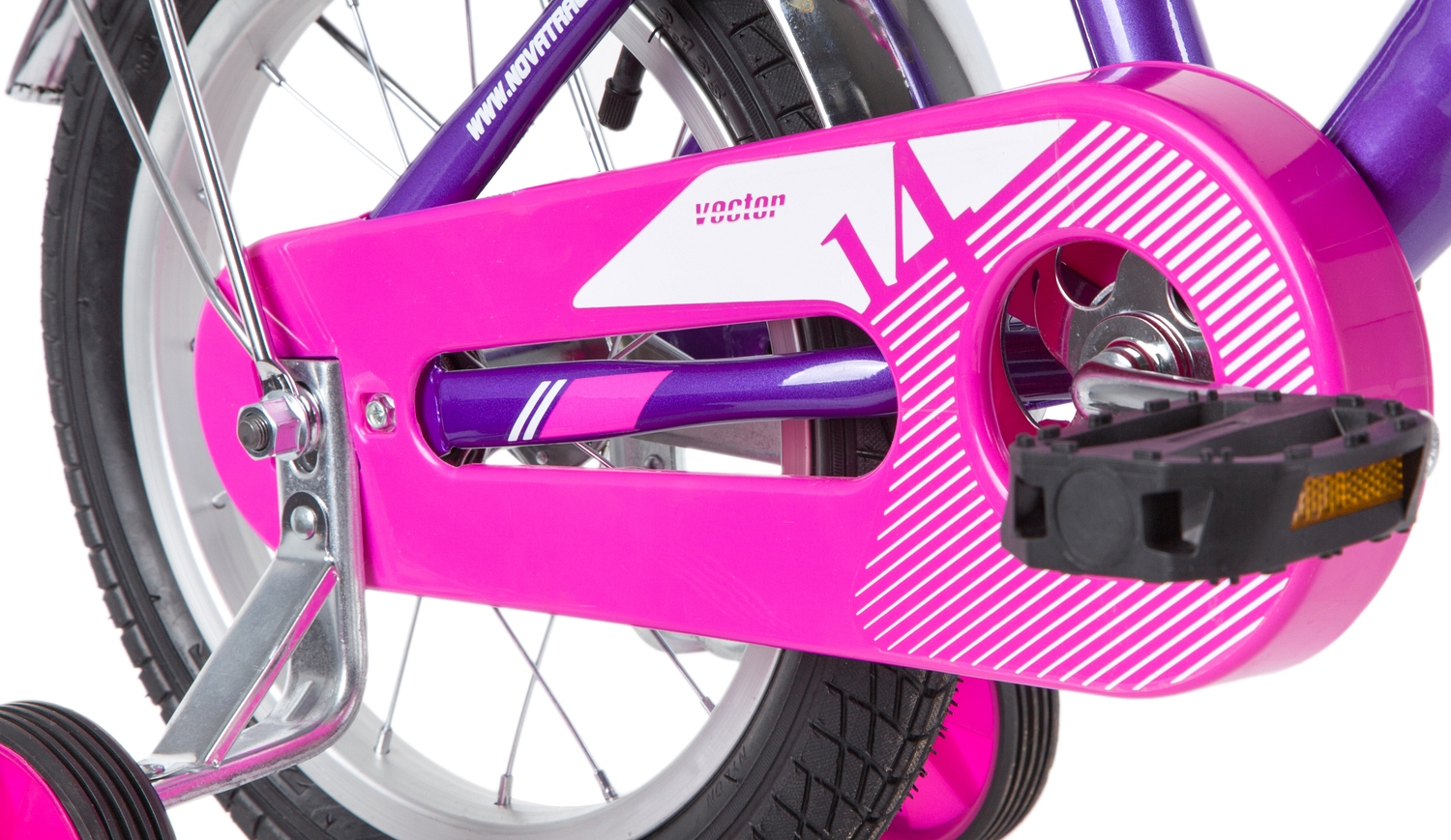 Велосипед NOVATRACK 14" VECTOR лиловый, тормоз нож, крылья, багажник, полная защ.цепи