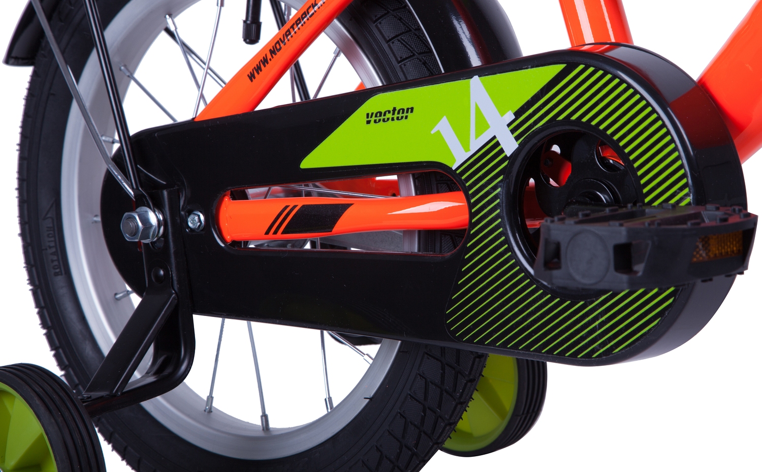 Велосипед NOVATRACK 14" VECTOR оранжевый, тормоз нож, крылья, багажник, полная защ.цепи