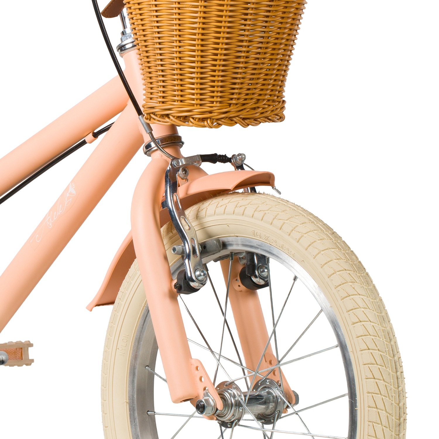 Велосипед NOVATRACK 16" ADELE, персиковый, полная защита цепи, ручной передний и задний тормоз, крылья, пер.корзина