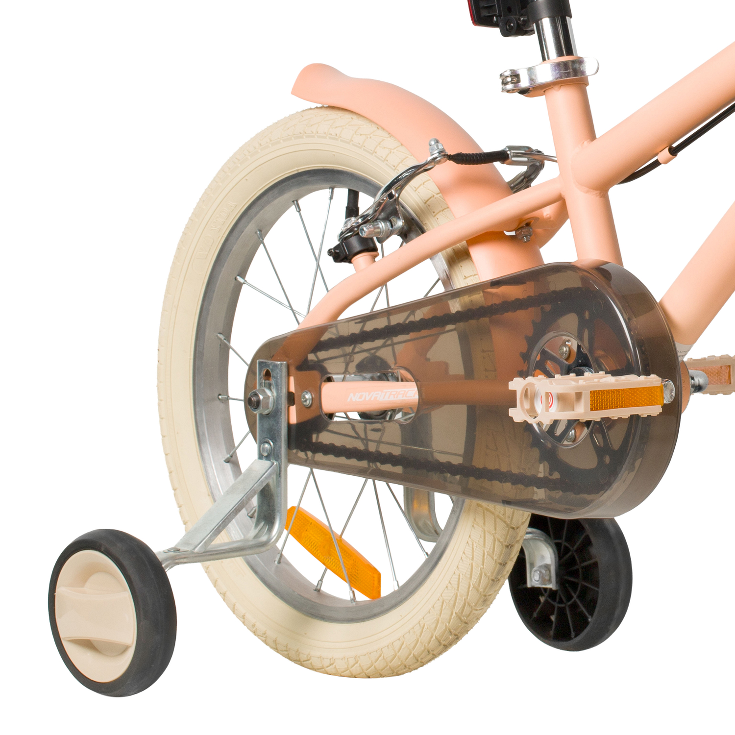 Велосипед NOVATRACK 16" ADELE, сталь, персиковый, полная защита цепи, ручной передний и задний тормо