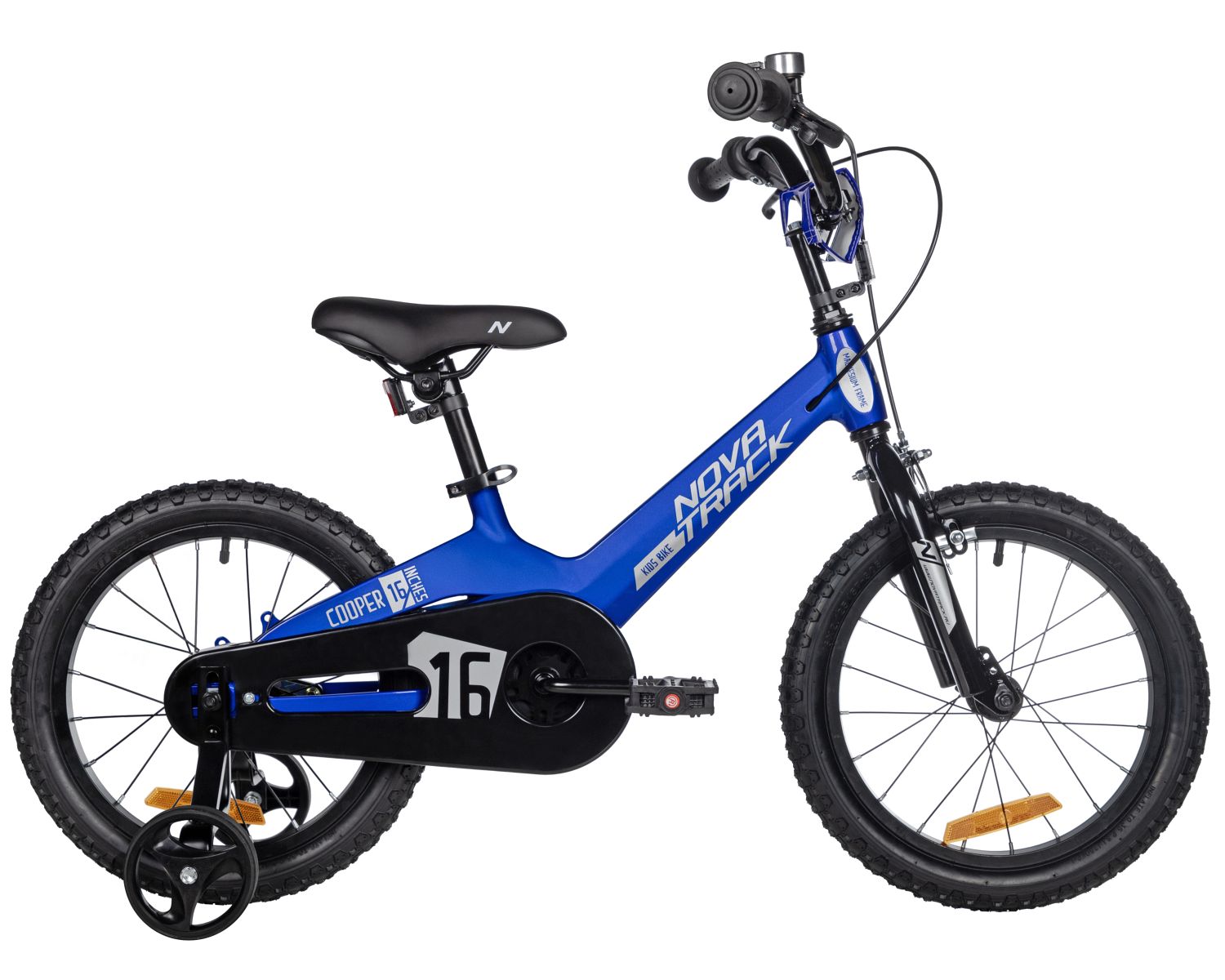 Велосипед NOVATRACK 16" COOPER. Магнезиевая рама, синий, полная защ.цепи, пер.тормоз калипер, зад.тормоз ленточный