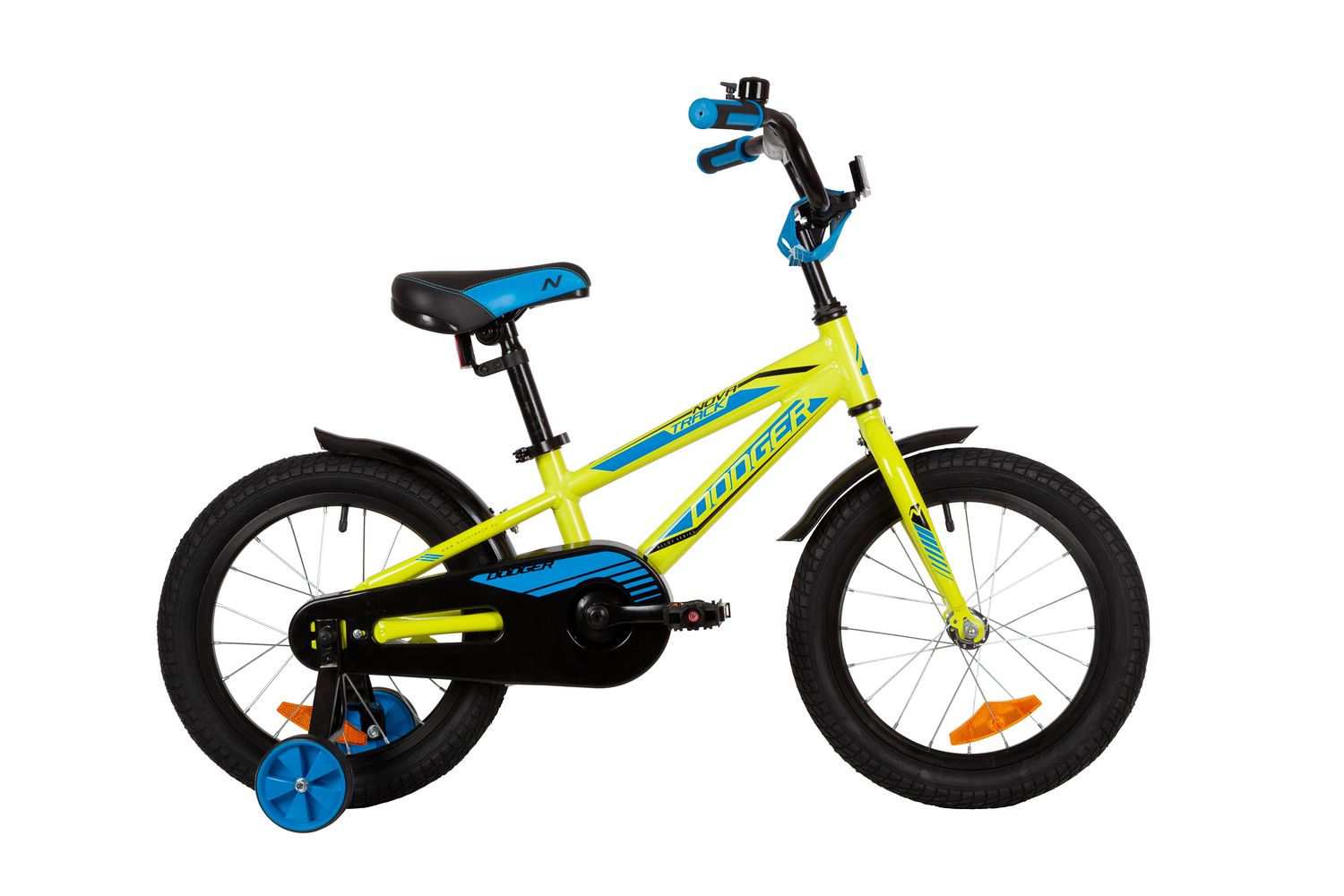 Велосипед NOVATRACK 16" DODGER алюм., зелёный, тормоз нож, короткие крылья, полная защита цепи