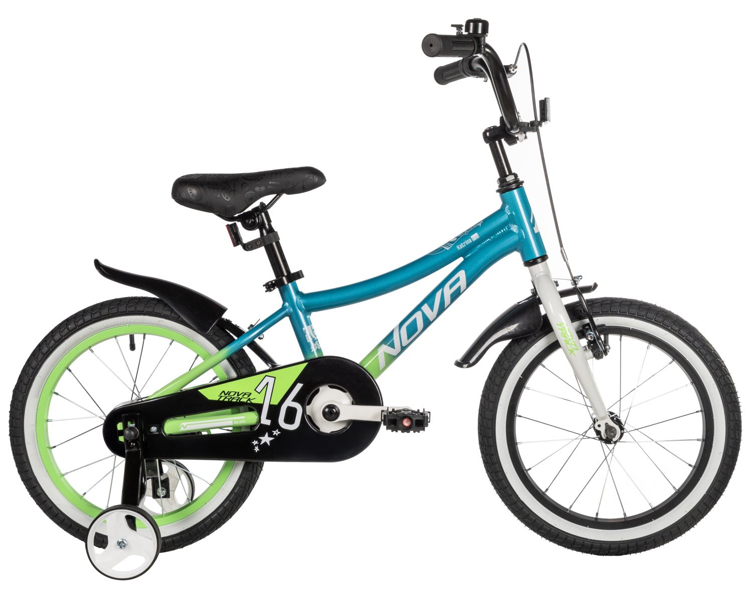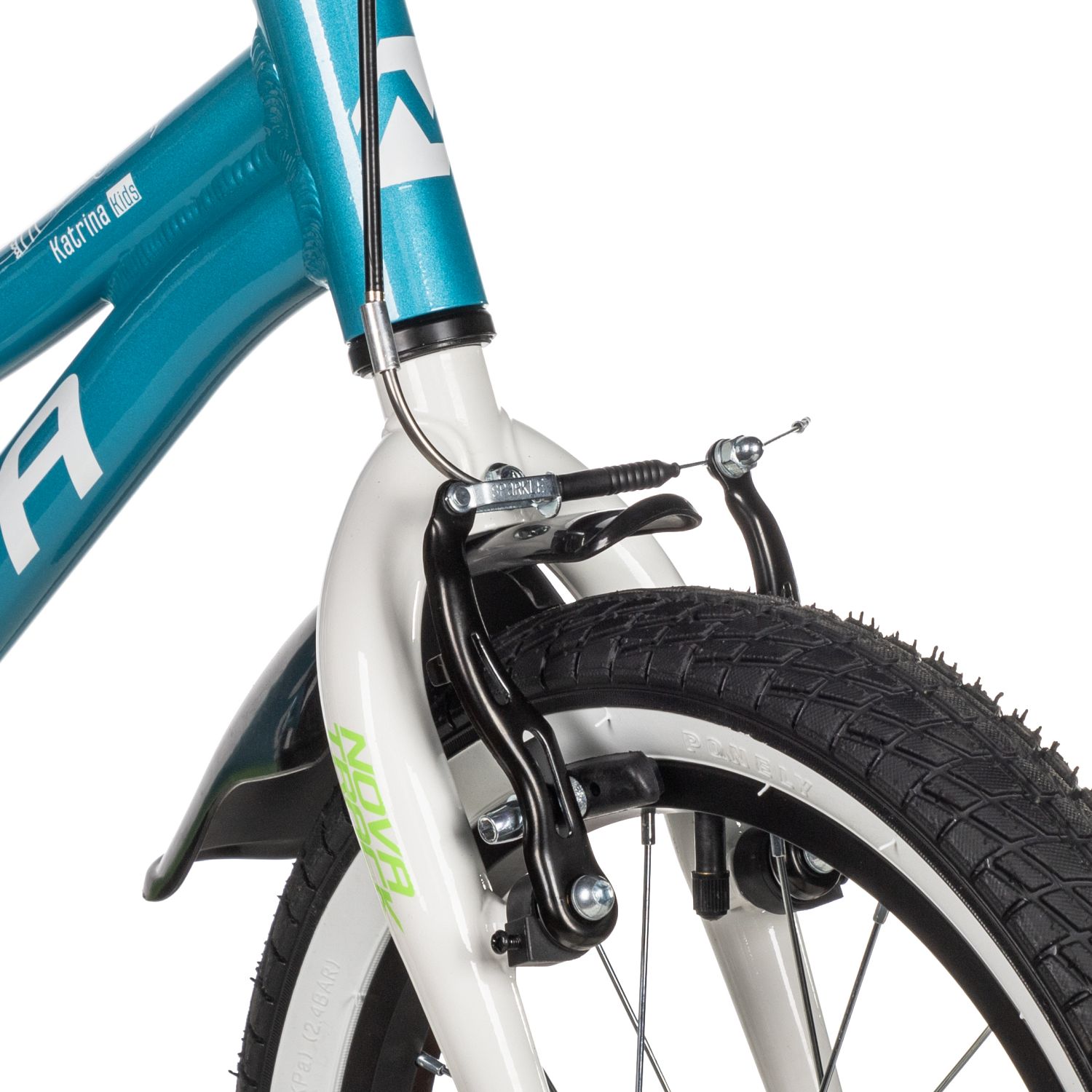 Велосипед NOVATRACK 16" KATRINA алюм.,голубой-салатов, полная защ.цепи, пер.руч., зад.нож. тормоз, к