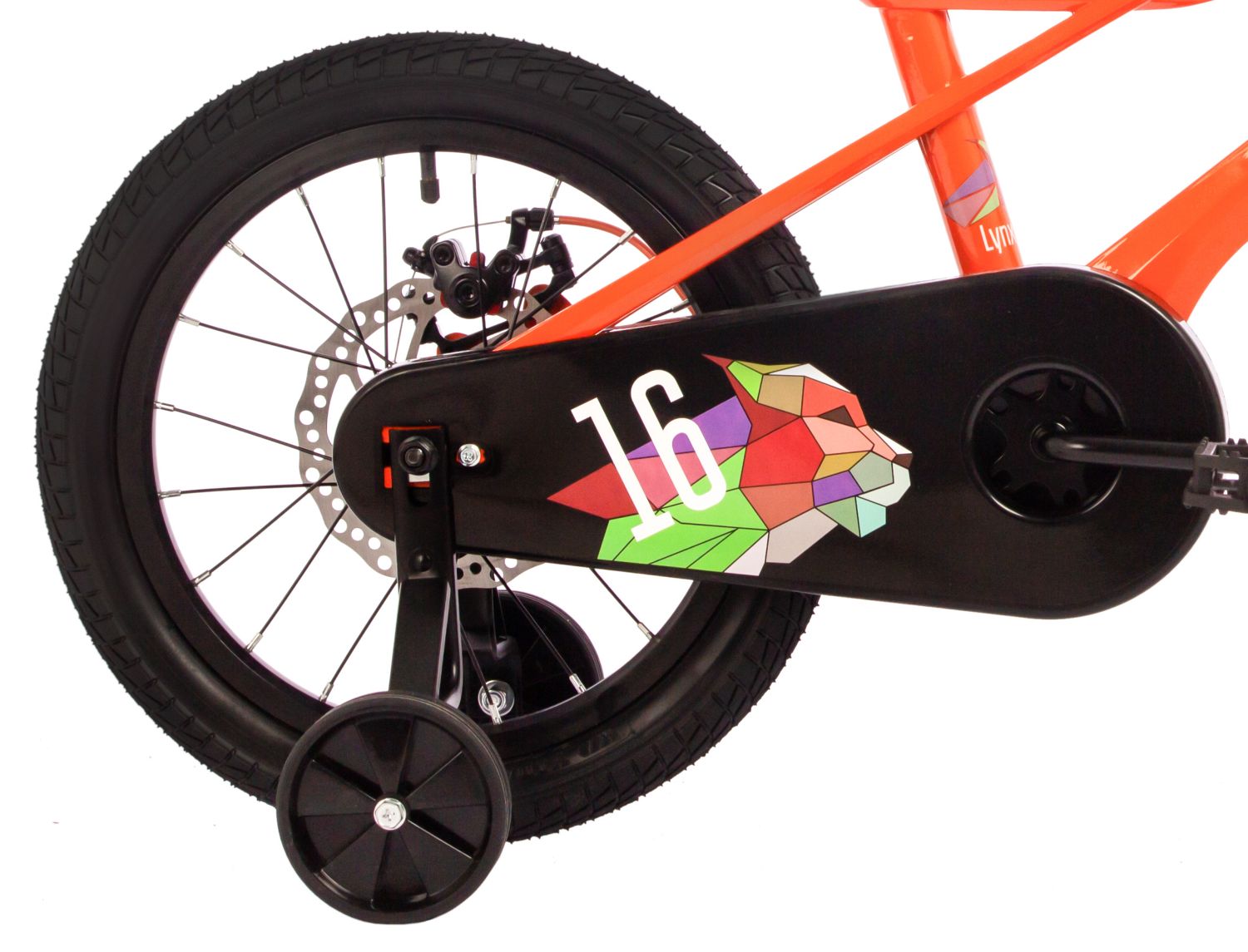 Велосипед NOVATRACK 16" LYNX. Магнезиевая рама, оранж, полная защ.цепи, диск.тормоз, короткие крылья