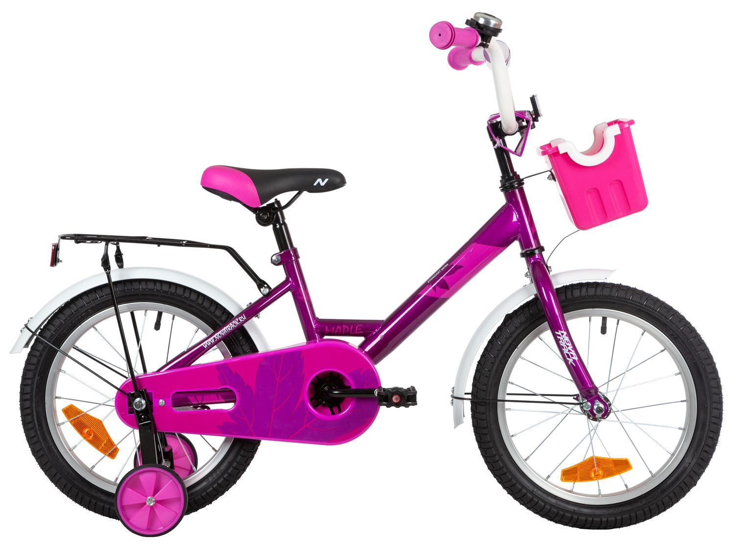 Велосипед NOVATRACK 16" MAPLE пурпурный, полная защита цепи, тормоз нож., багажник, пер.корзина