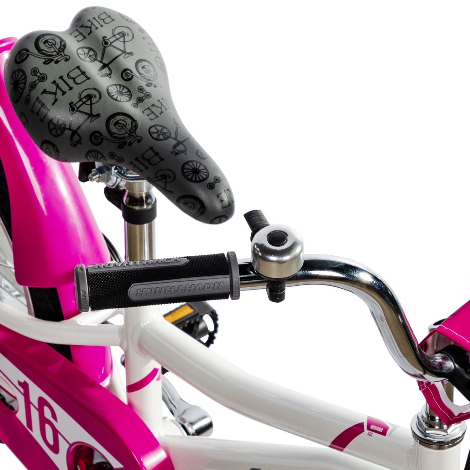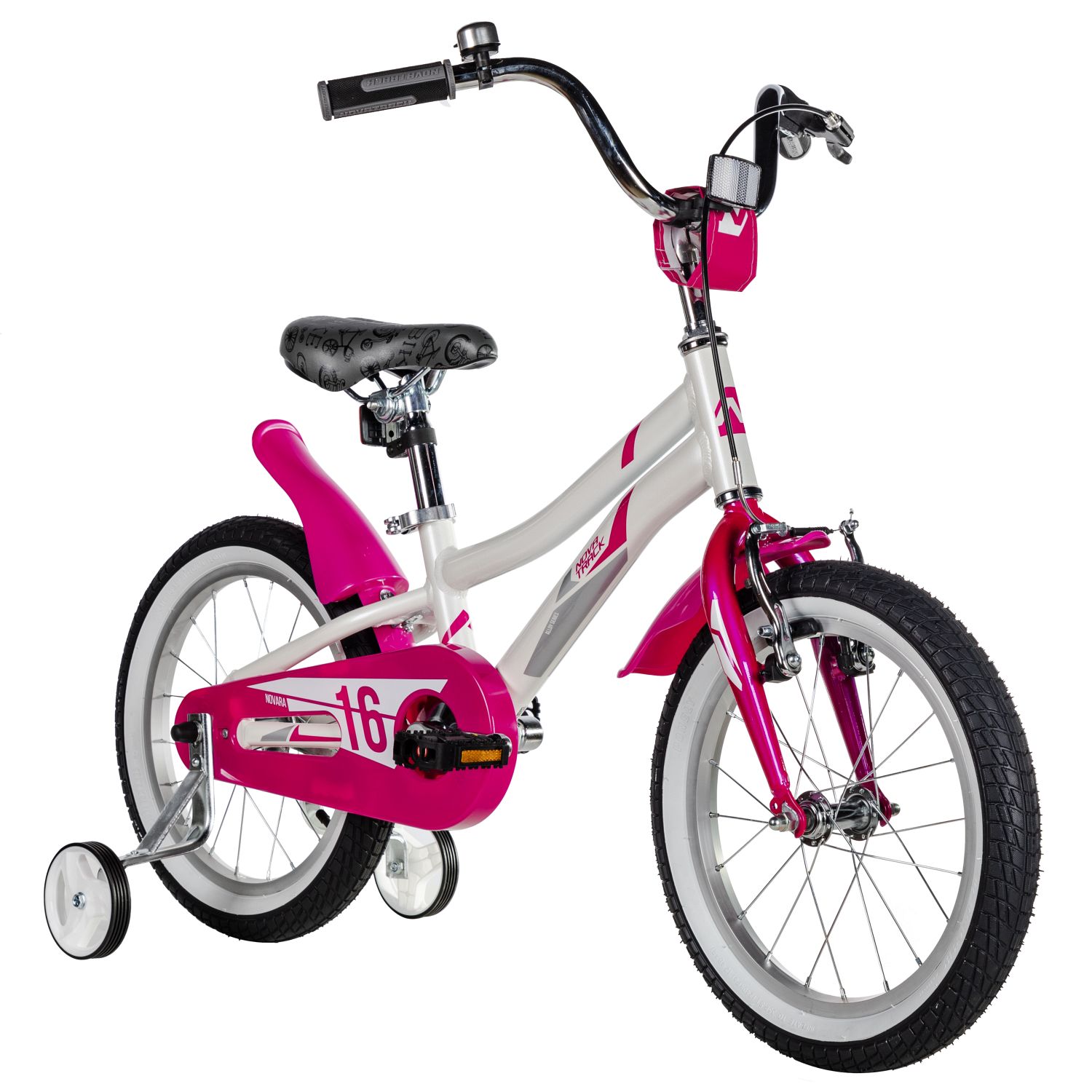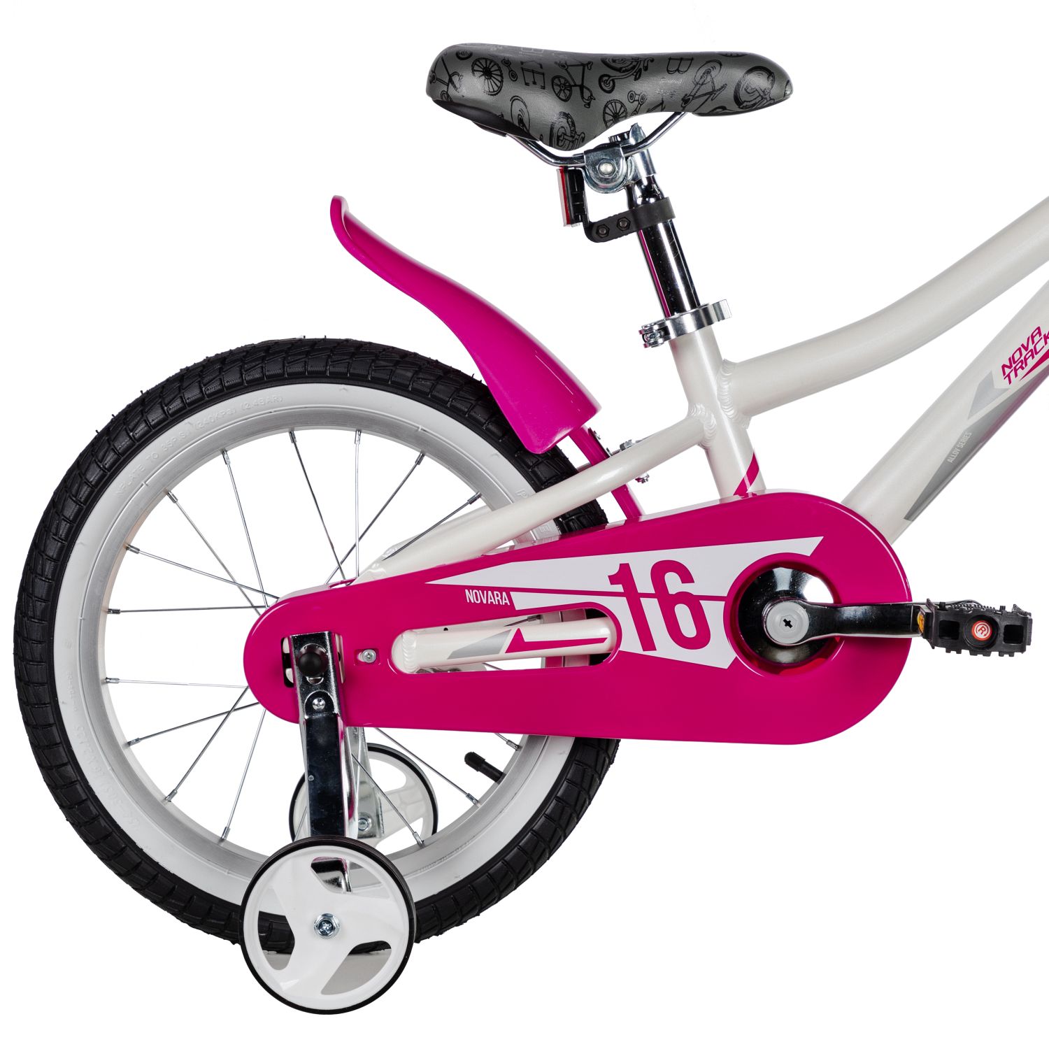 Велосипед NOVATRACK 16" NOVARA алюм., белый, пер.руч., зад.нож. тормоз, короткие крылья, полная защита цепи