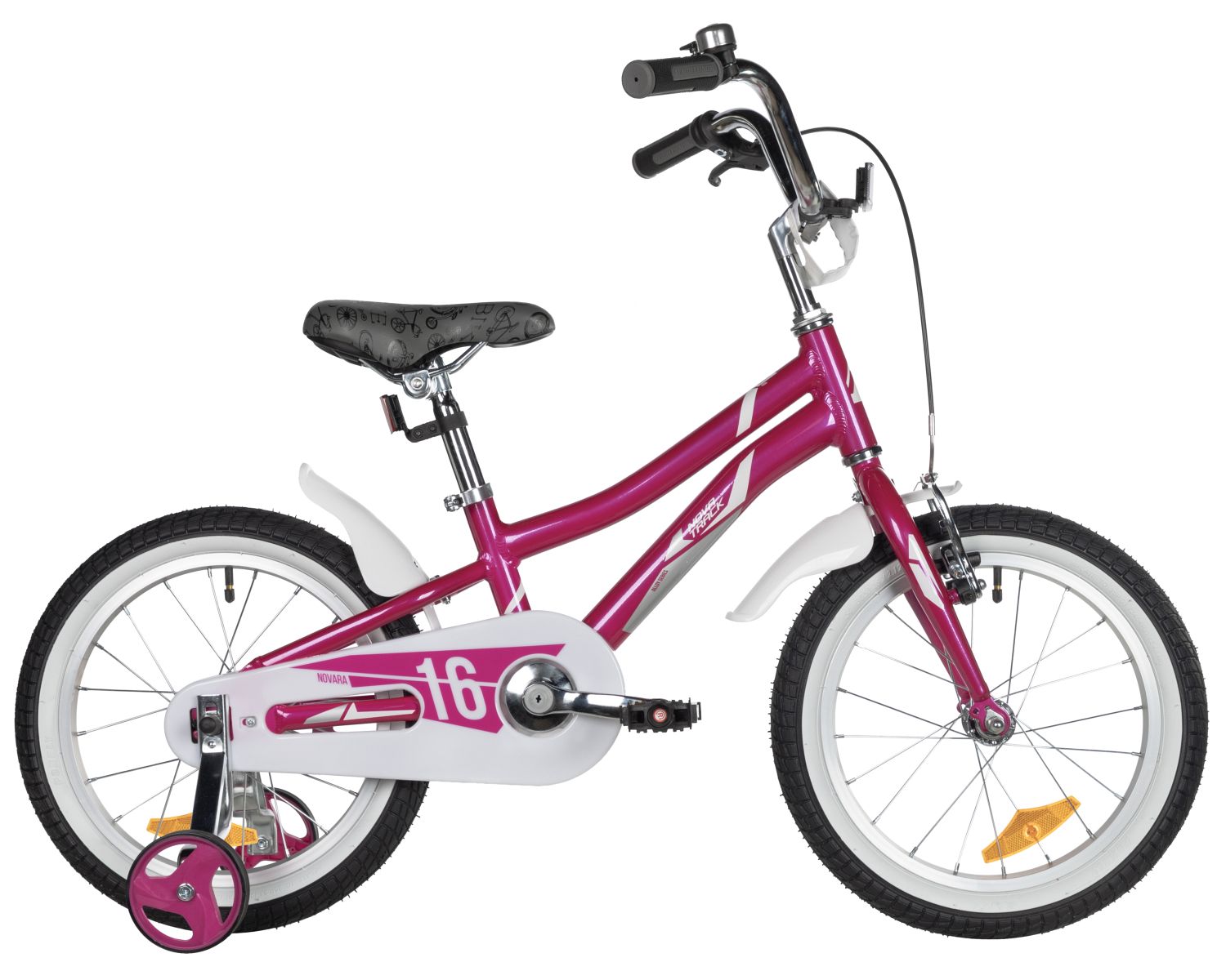 Велосипед NOVATRACK 16" NOVARA алюм., фуксия, пер.руч., зад.нож. тормоз, короткие крылья, полная защ
