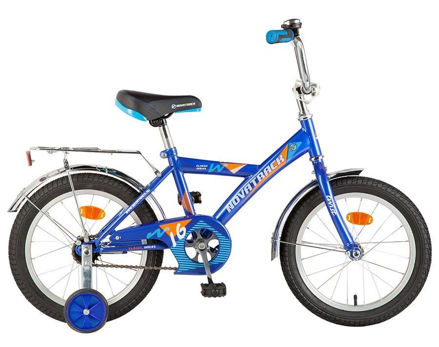 Велосипед NOVATRACK 16" TWIST, синий, тормоз нож, крылья цвет, багажник хром.