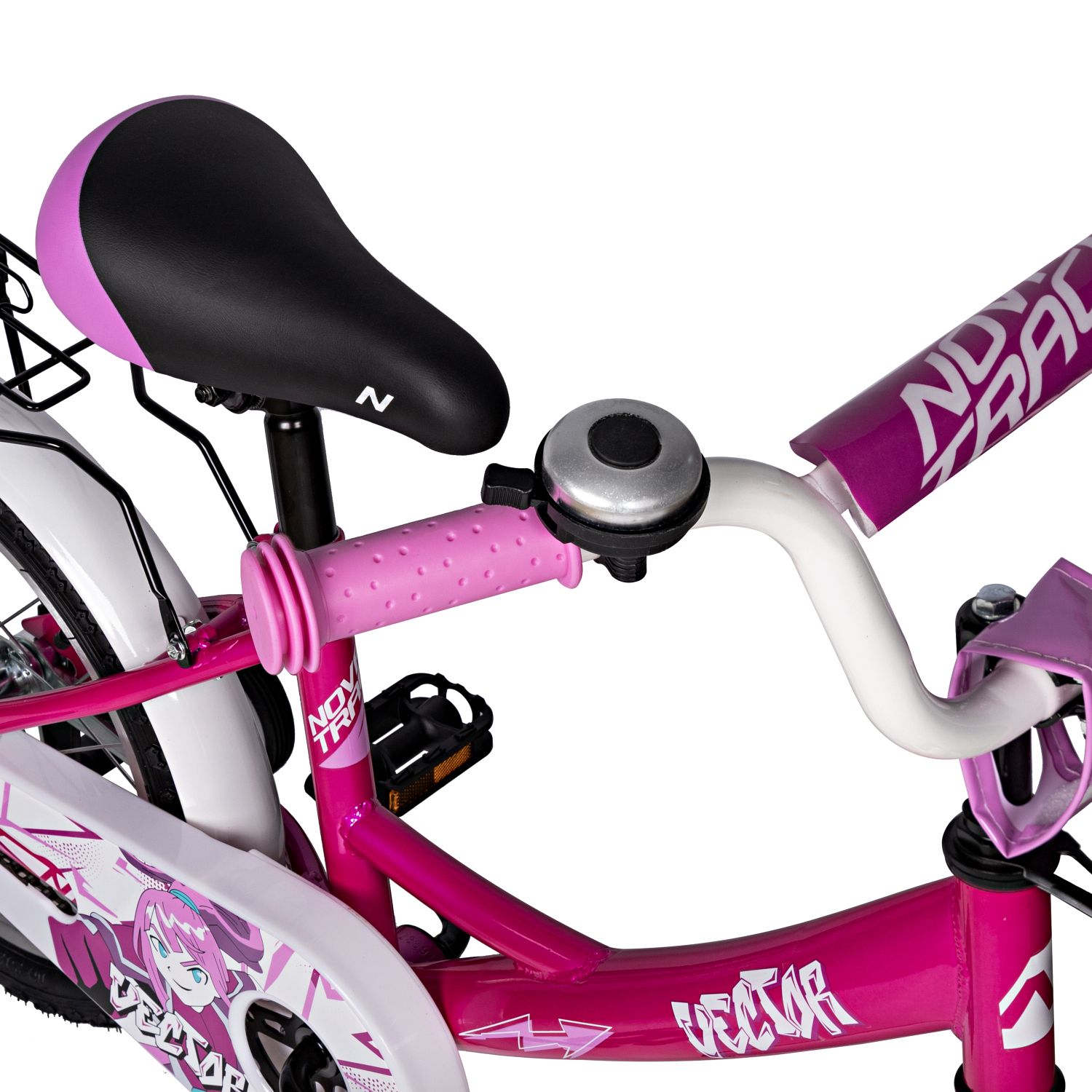 Велосипед NOVATRACK 16", VECTOR, фуксия, полная защита цепи, тормоз нож., крылья, багажник