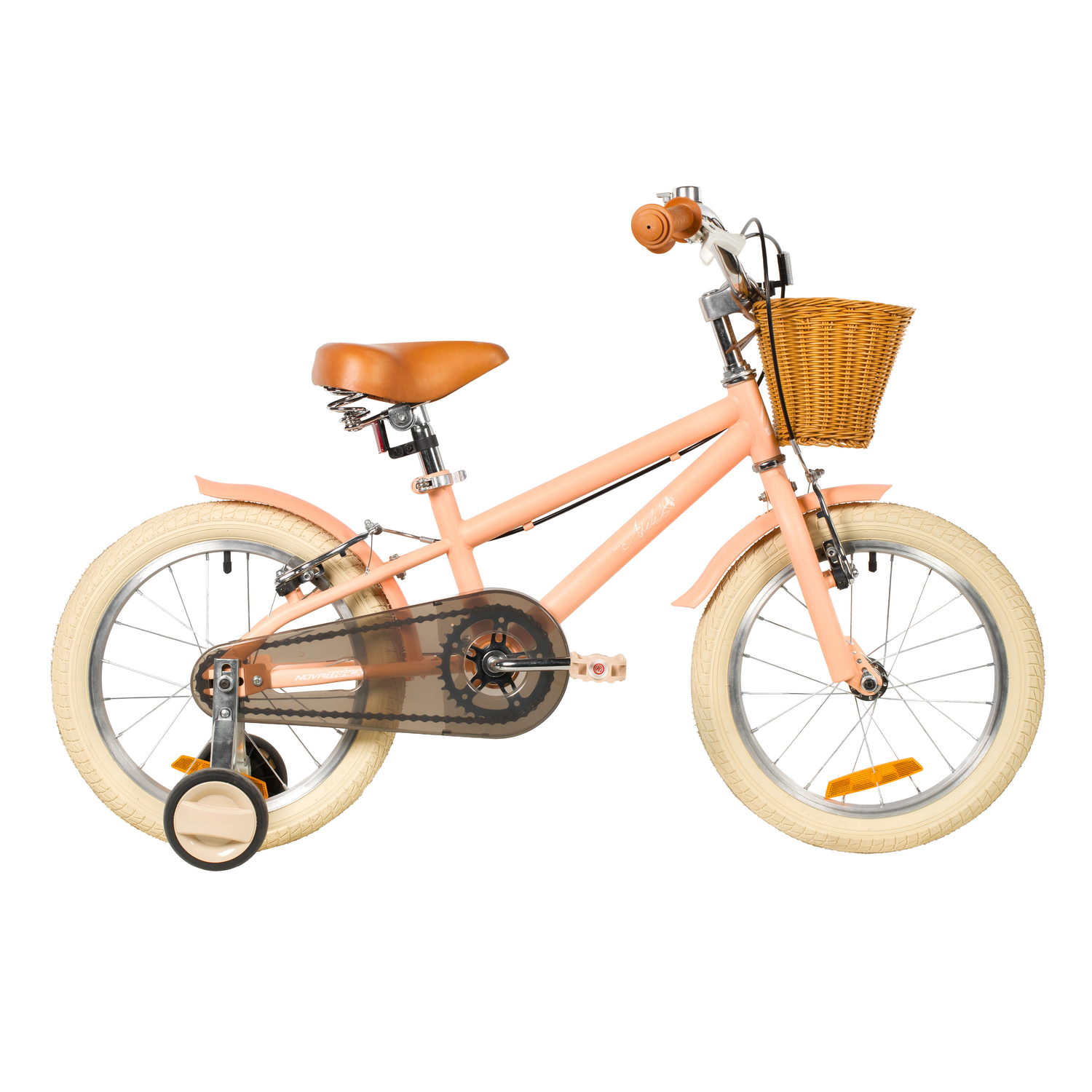 Велосипед NOVATRACK 18" ADELE, сталь, персиковый, полная защита цепи, ручной передний и задний тормо