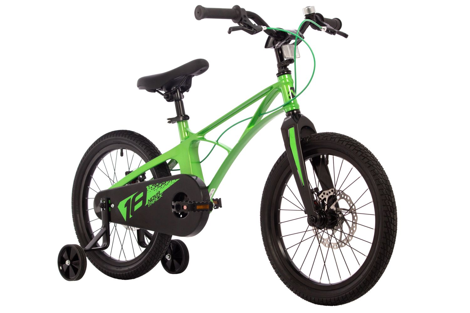 Велосипед NOVATRACK 18" Blast. Магнезиевая рама, зелёный, полная защ.цепи, диск.тормоз, короткие крылья