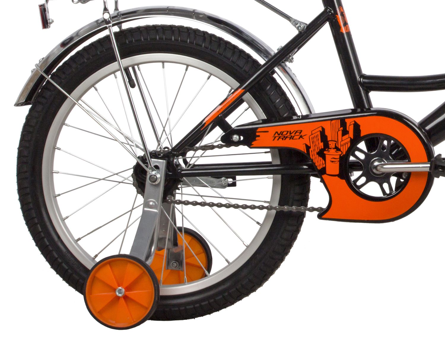 Велосипед NOVATRACK 18" URBAN чёрный, защита А-тип, тормоз нож, крылья и багажник хром