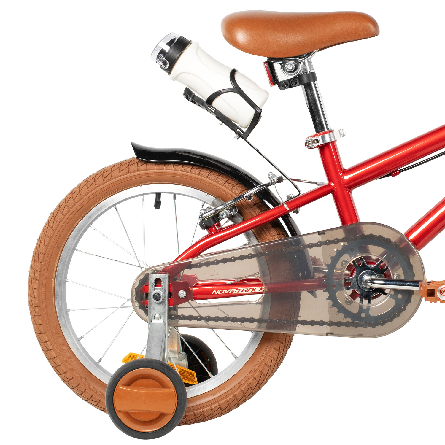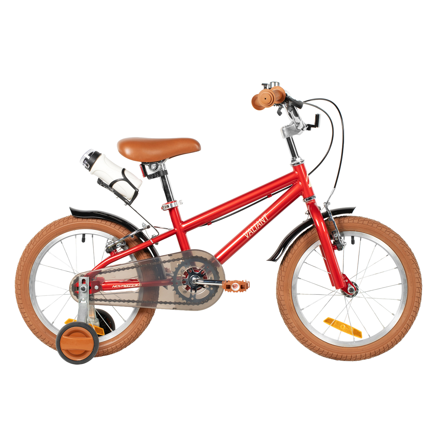 Велосипед NOVATRACK 18" VALIANT, сталь,красный, полная защита цепи, ручной передний и задний тормоз, крылья, флягодержатель, фляга для воды
